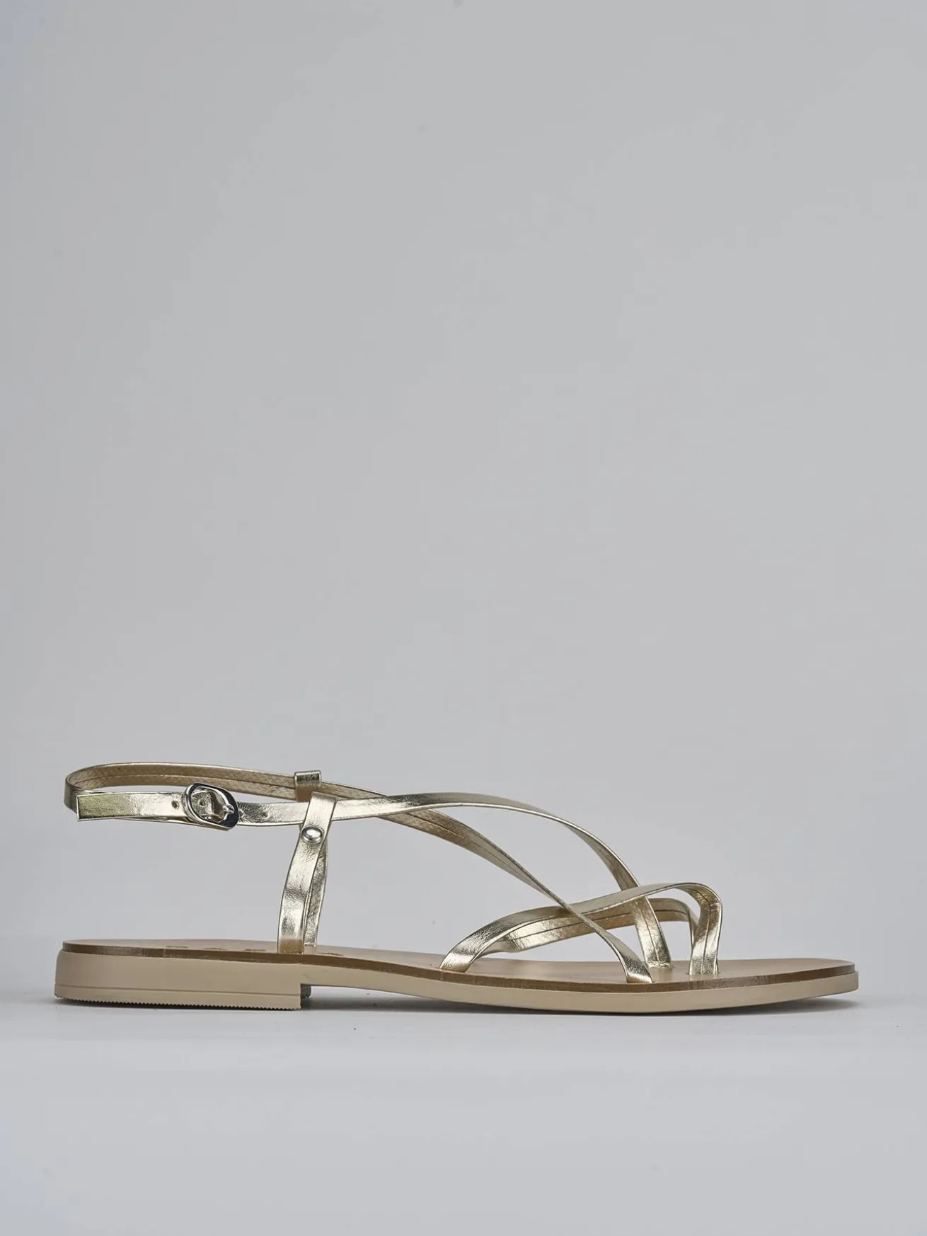 La tomaia è realizzata in morbida pelle con sottili fascette incrociate che conferiscono un look cool e sofisticato.