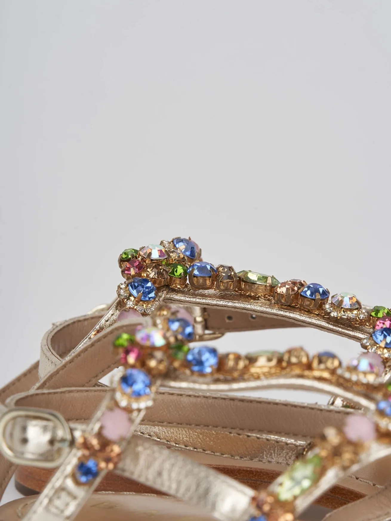 Realizzati in pelle dorata, questi sandali a tacco basso di 1 cm offrono un comfort ineguagliabile grazie al fondo in leggerissima gomma e al soletto interno in vera pelle.