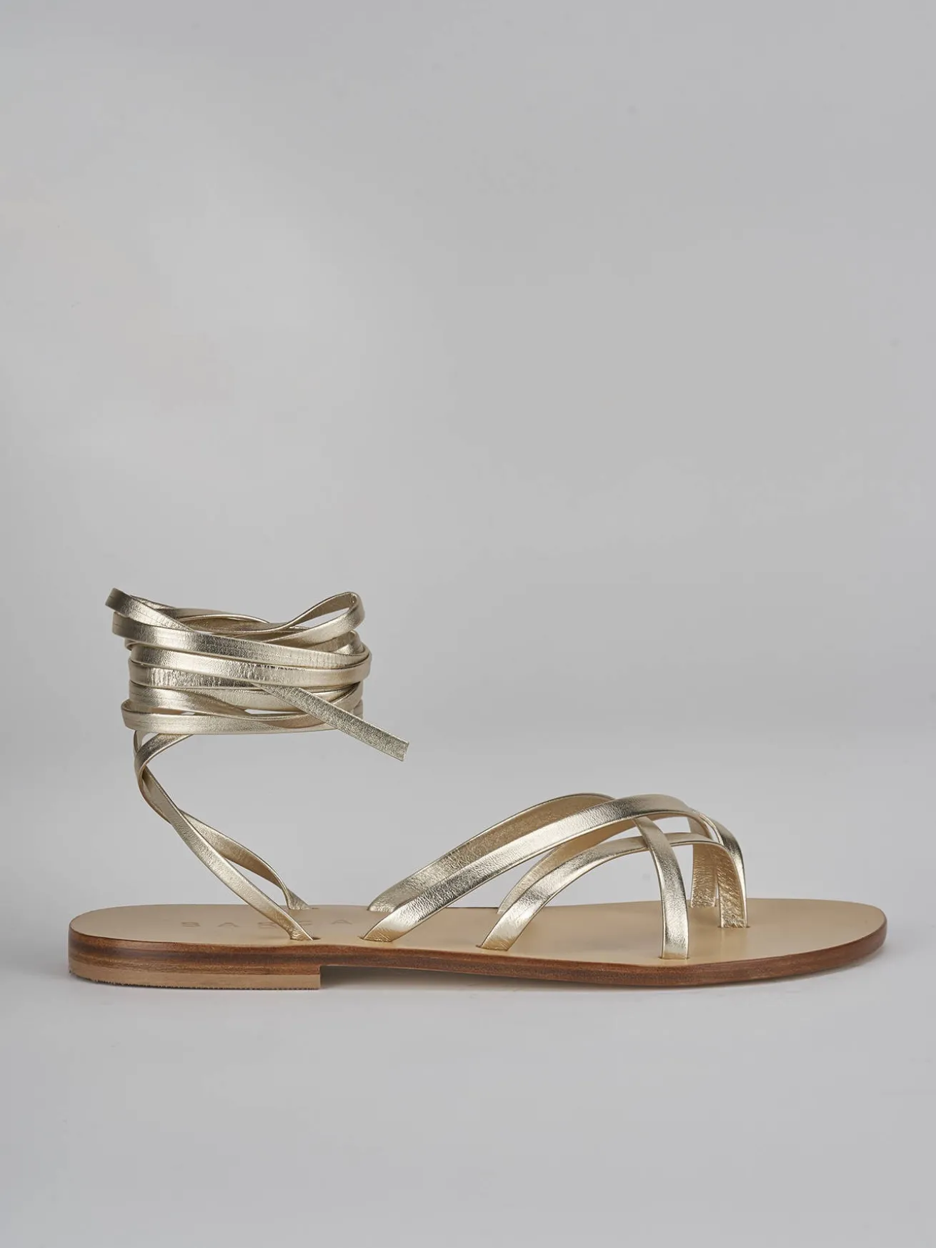 Realizzato in pelle color oro, questo sandalo infradito è sinonimo di eleganza e comodità.
