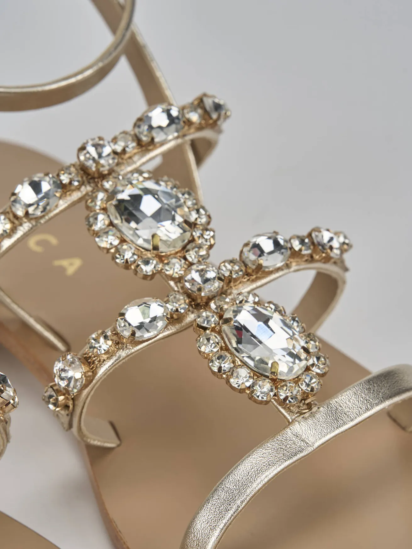 La punta affusolata e le fascette impreziosite da strass aggiungono un tocco di eleganza e luminosità.