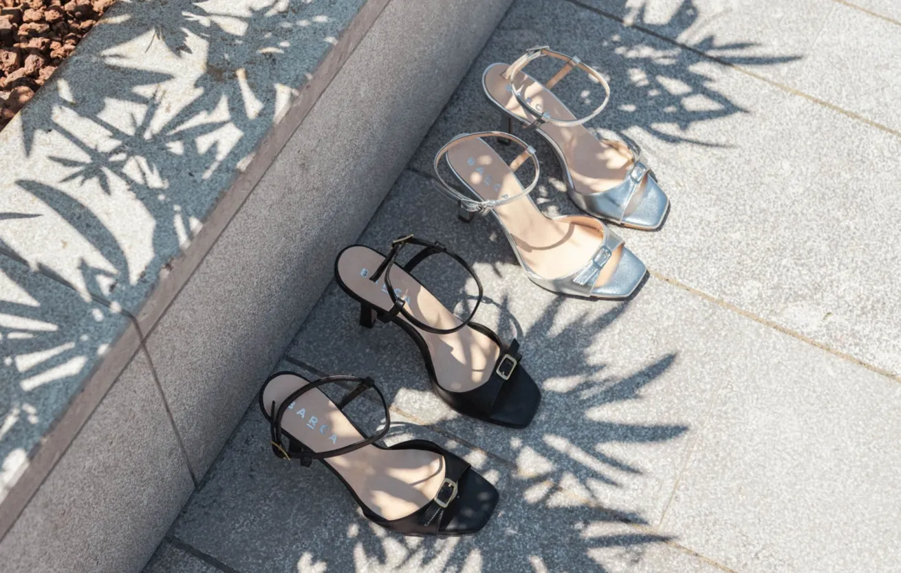 Sandalo tacco 9 cm fondo in cuoio e soletto interno in vera pelle. Tomaia in morbida pelle laminata, punta squadrata, fascia unica con fibbia regolabile, comoda chiusura in caviglia con cinturino con fibbia regolabile e nuovissimo tacco rocchetto. Versatile per ogni tua occasione.