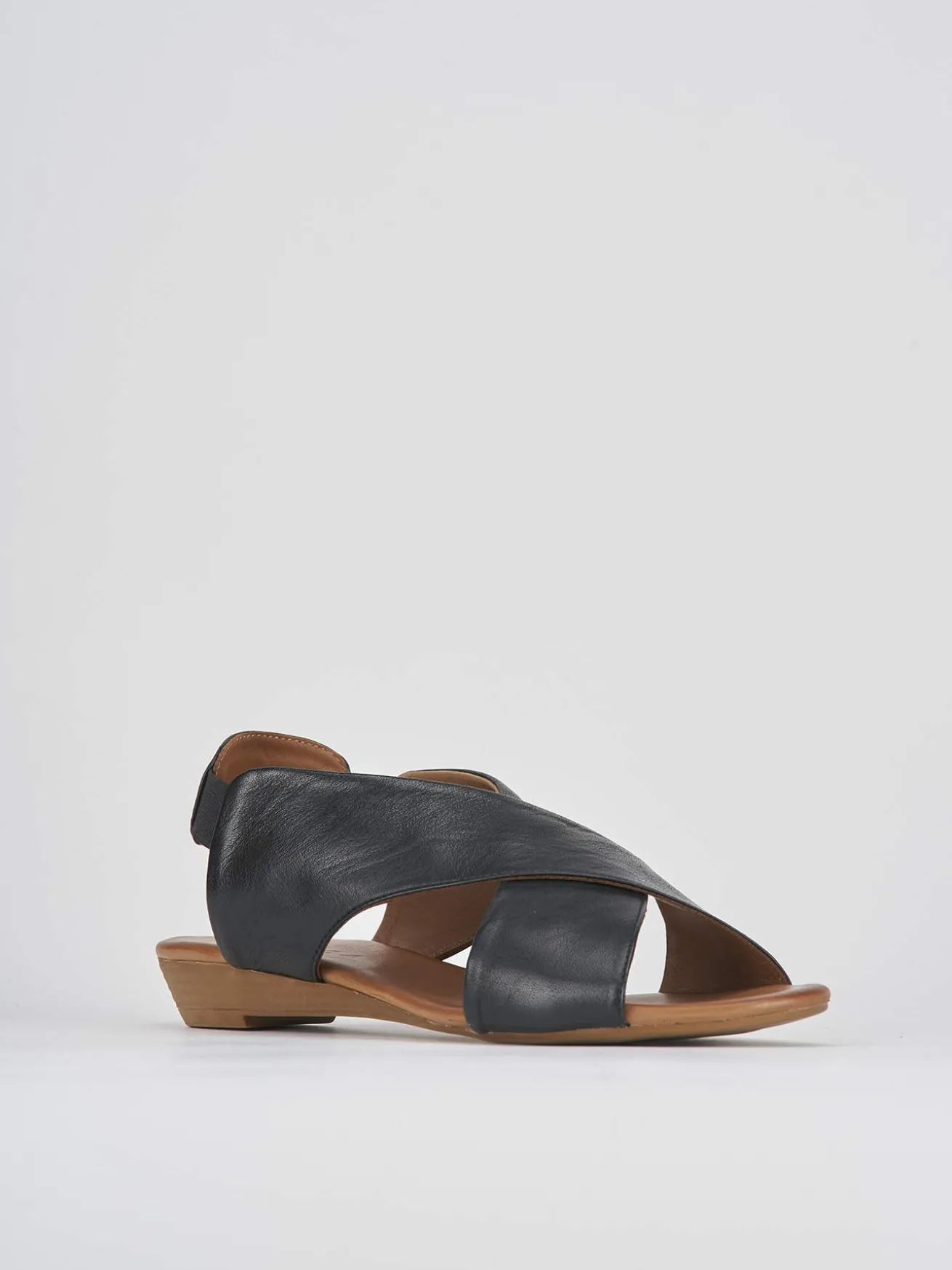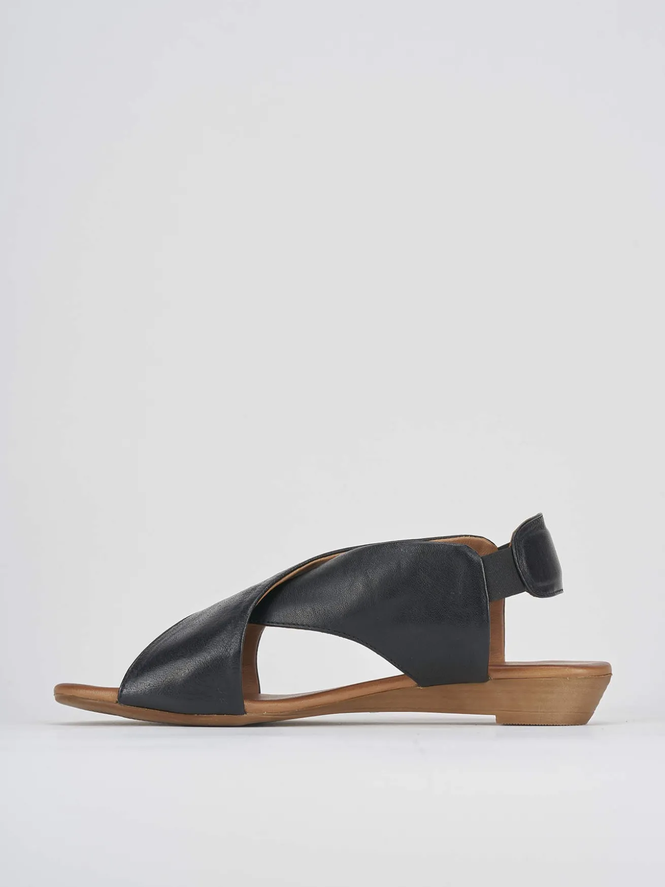 sandalo zeppa 3 cm fondo in leggerissima gomma e soletto interno in vera pelle. tomaia in morbida pelle, con fasce incrociate e comodissimo slingback elasticizzato per una calzata veloce.
