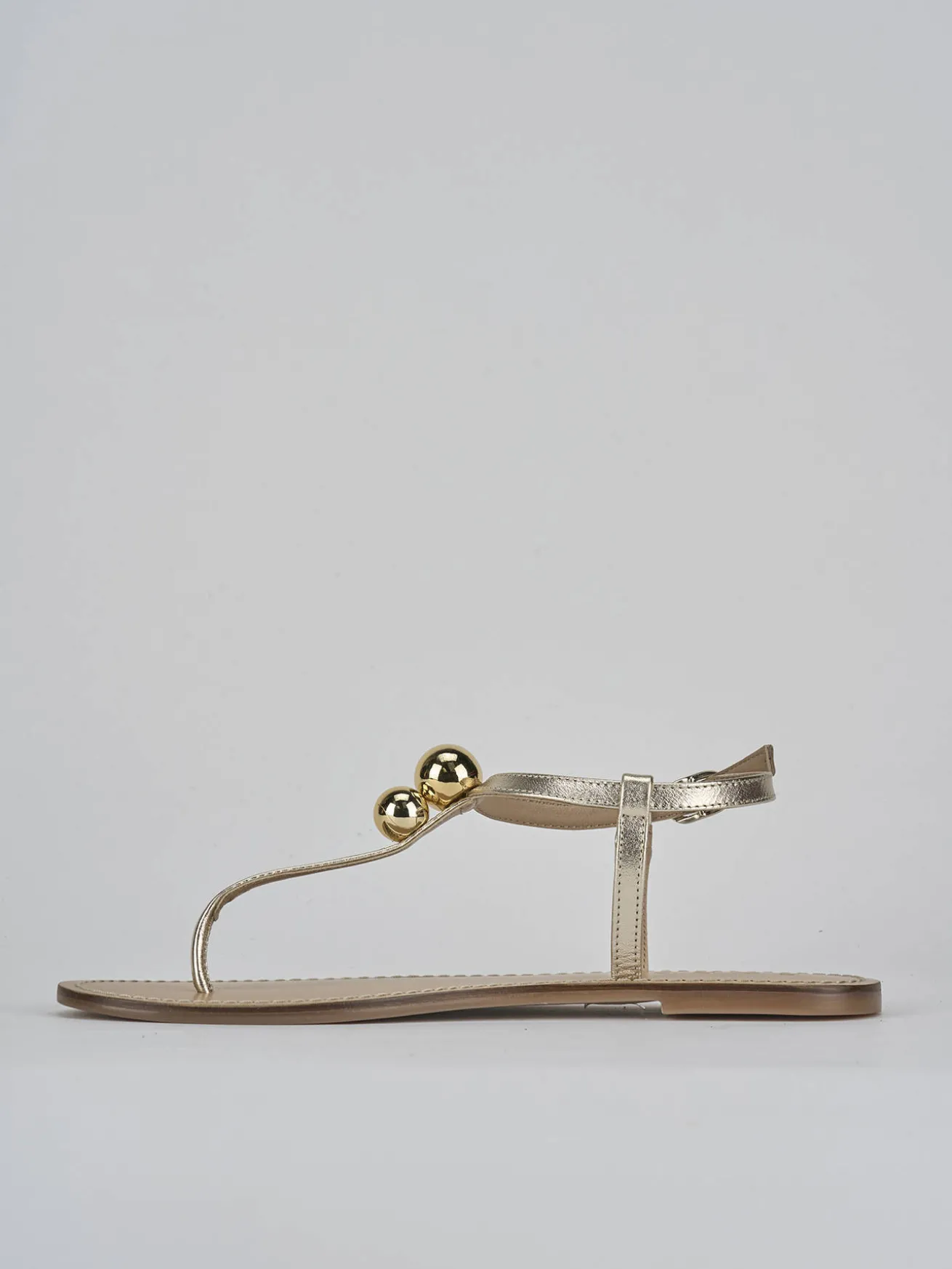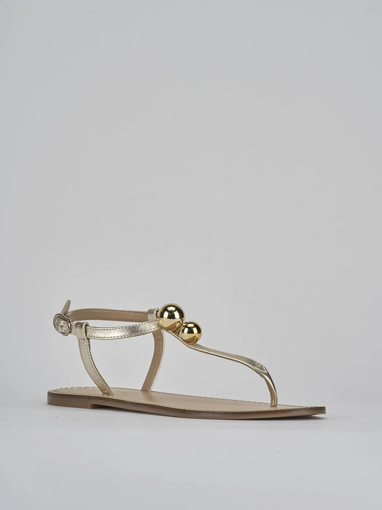 Realizzato in pelle nappata morbidissima, questo sandalo si distingue per la sua raffinata tonalità oro.