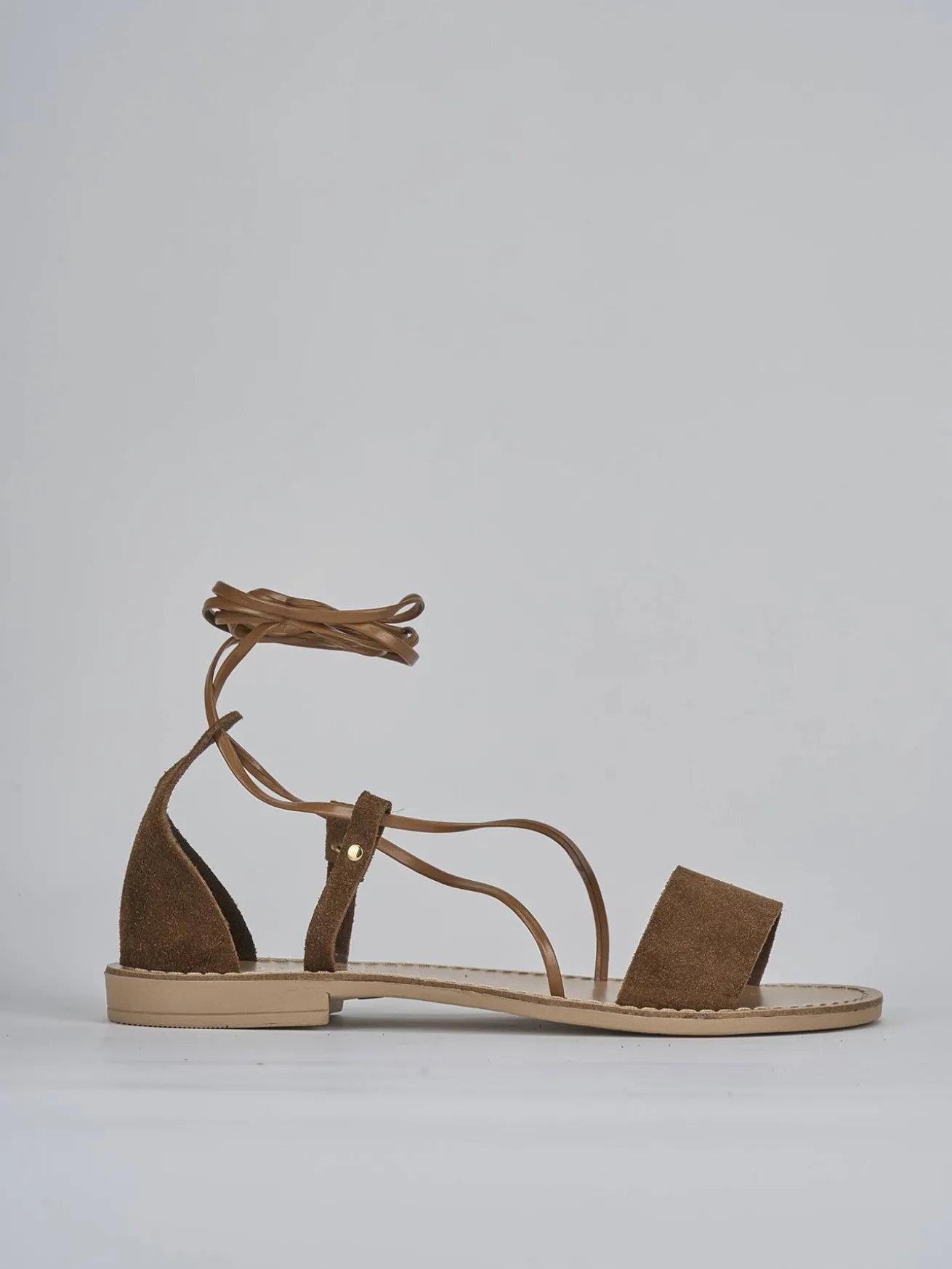 Realizzato in morbido camoscio marrone, questo sandalo con tacco basso di 1 cm è l’ideale per chi cerca stile e comodità.