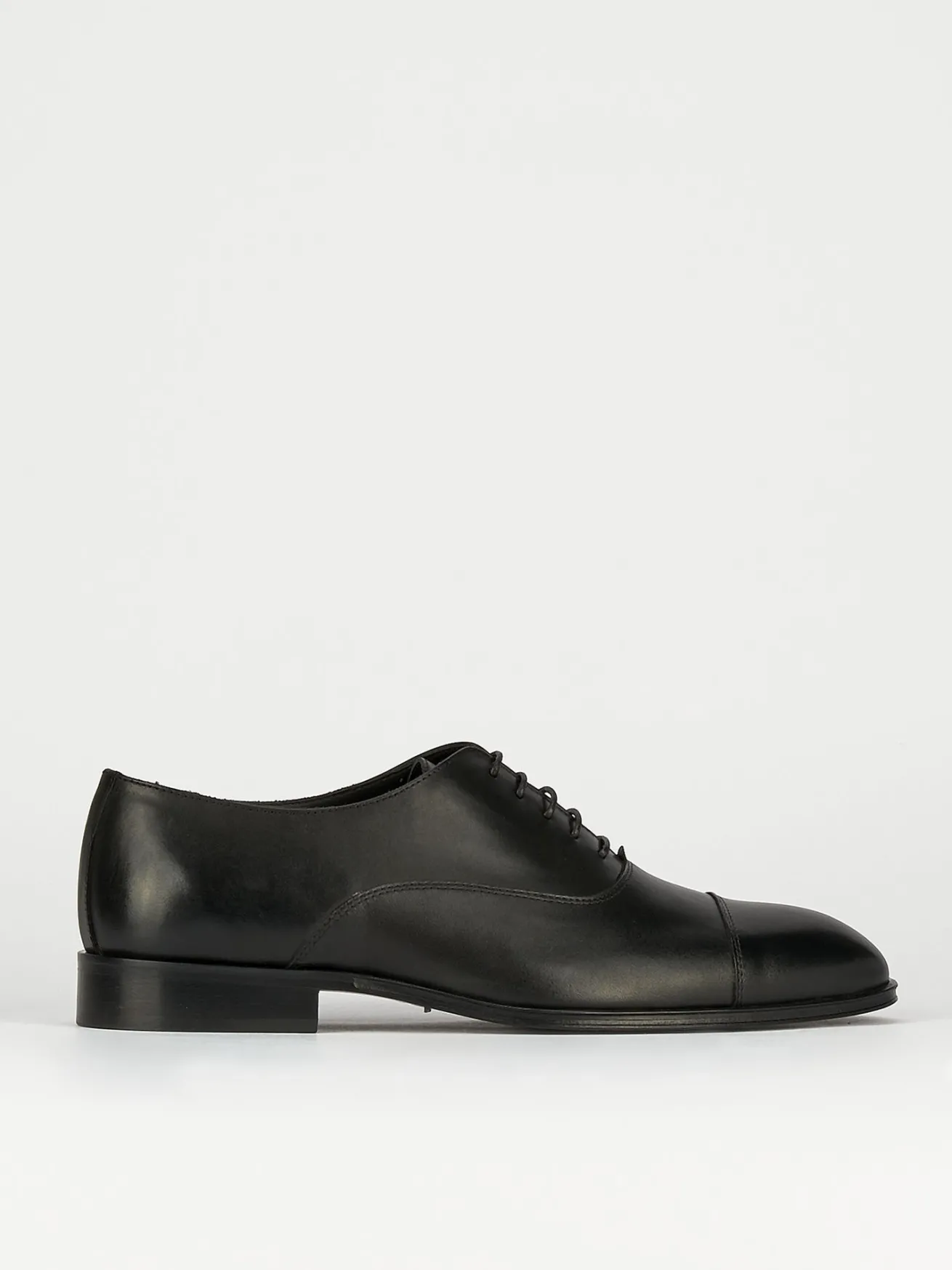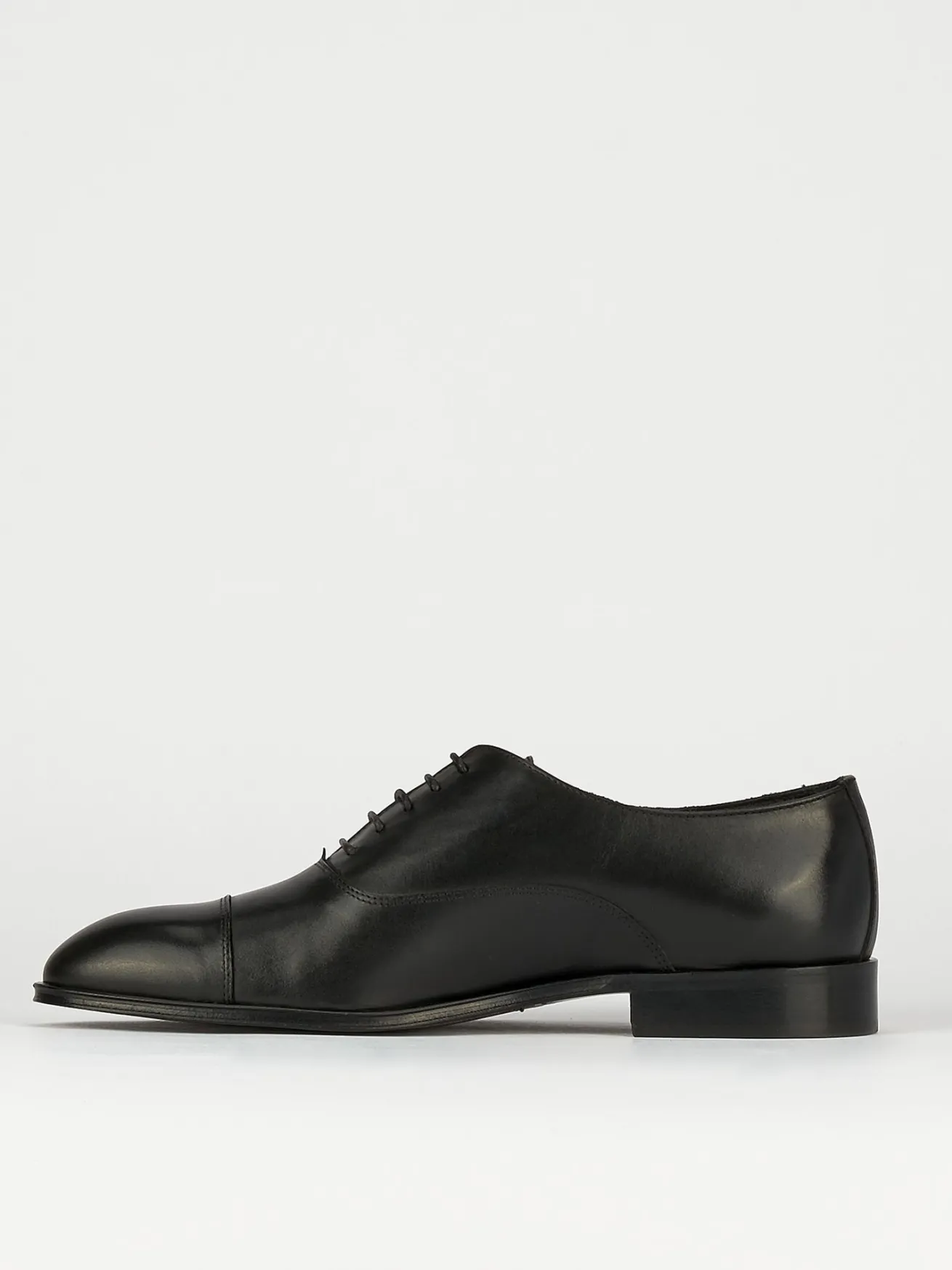 Realizzata in una bellissima pelle di vitello nera, questa calzatura si distingue per il suo design classico e raffinato.