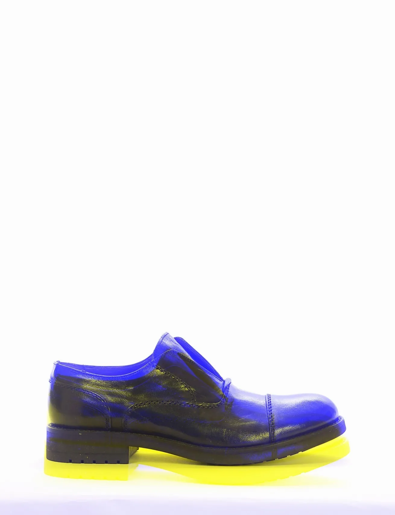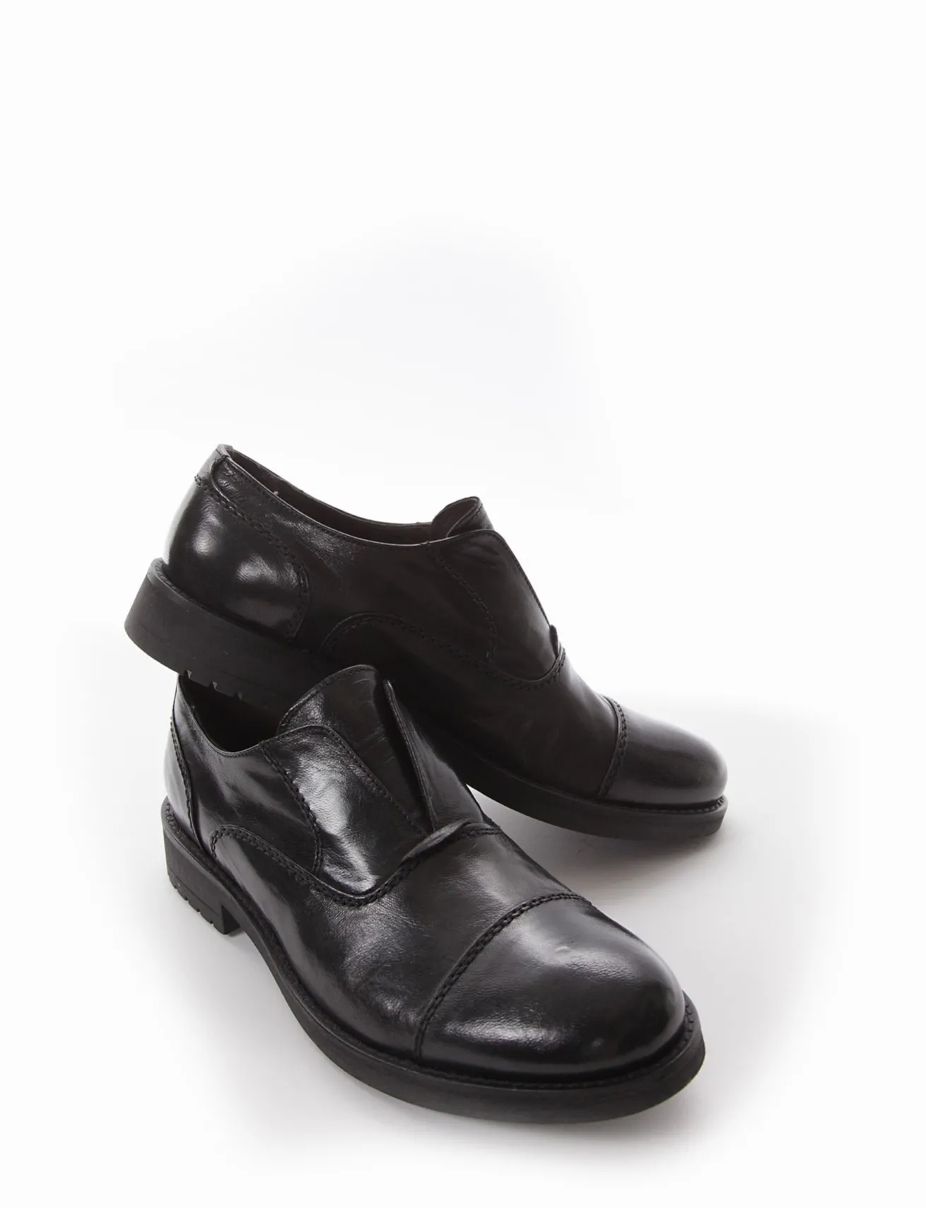 scarpa no lace tacco 2 cm, fondo in cuoio e soletto interno in vera pelle. Tomaia in morbidissima pelle con puntale evidenziato.