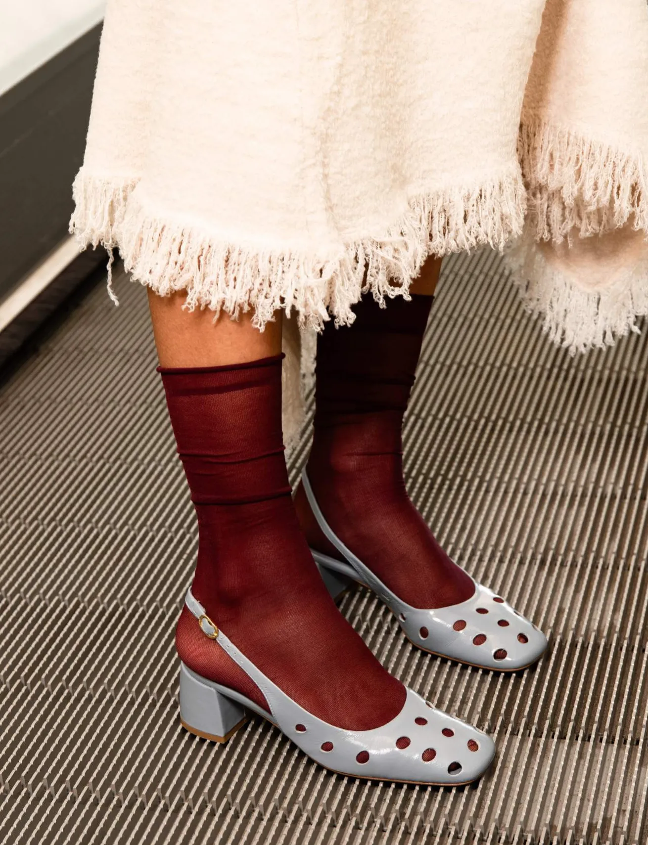 Slingback decolte’ tacco 4.5 cm fondo in leggerissima gomma e soletto interno in vera pelle. Tomaia in morbida pelle effetto verniciato, punta squadrata, scollo a ‘U’, fori a cerchio, cinturino sottile con fibbia regolabile e tacco grosso stabile per un look chic.