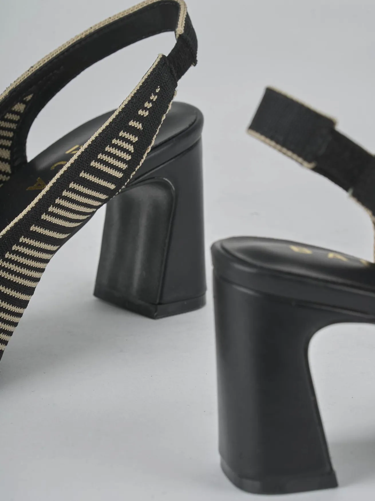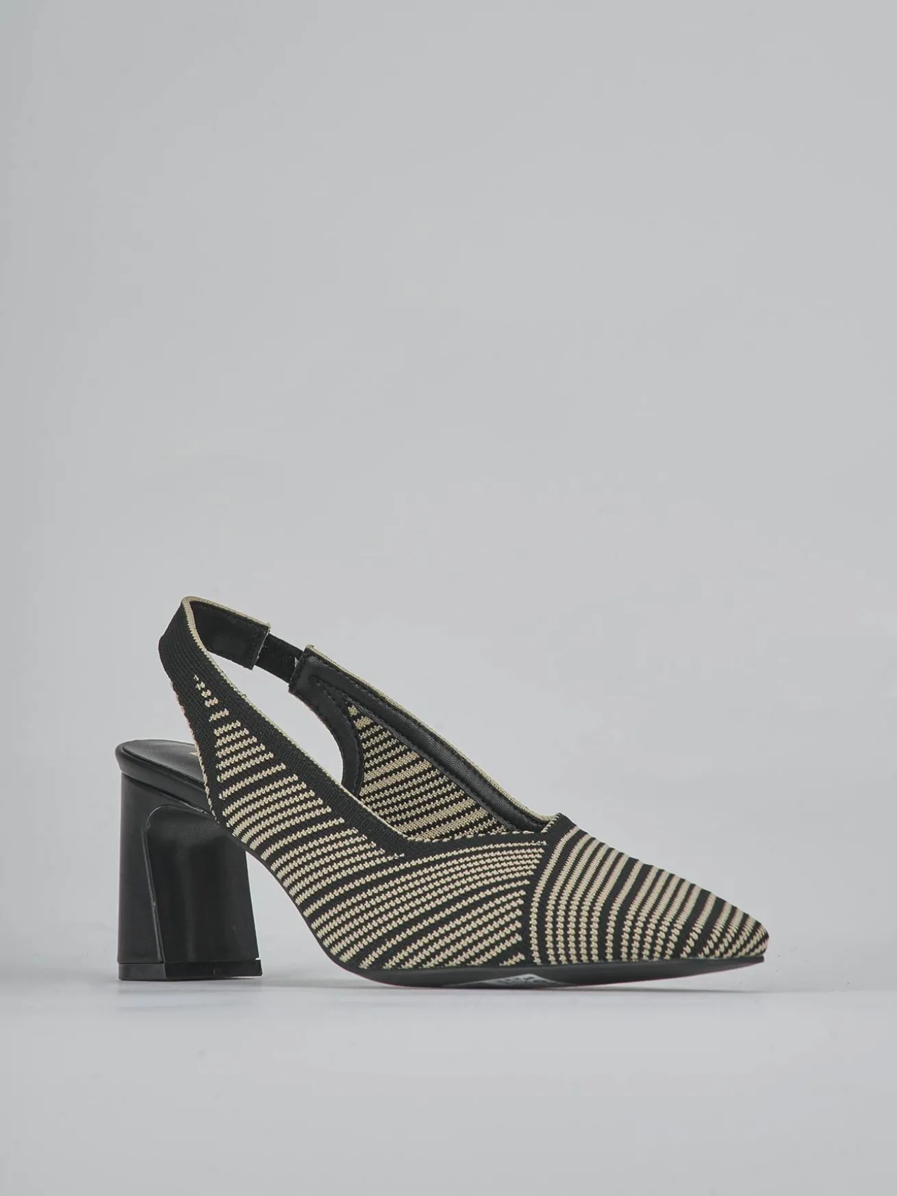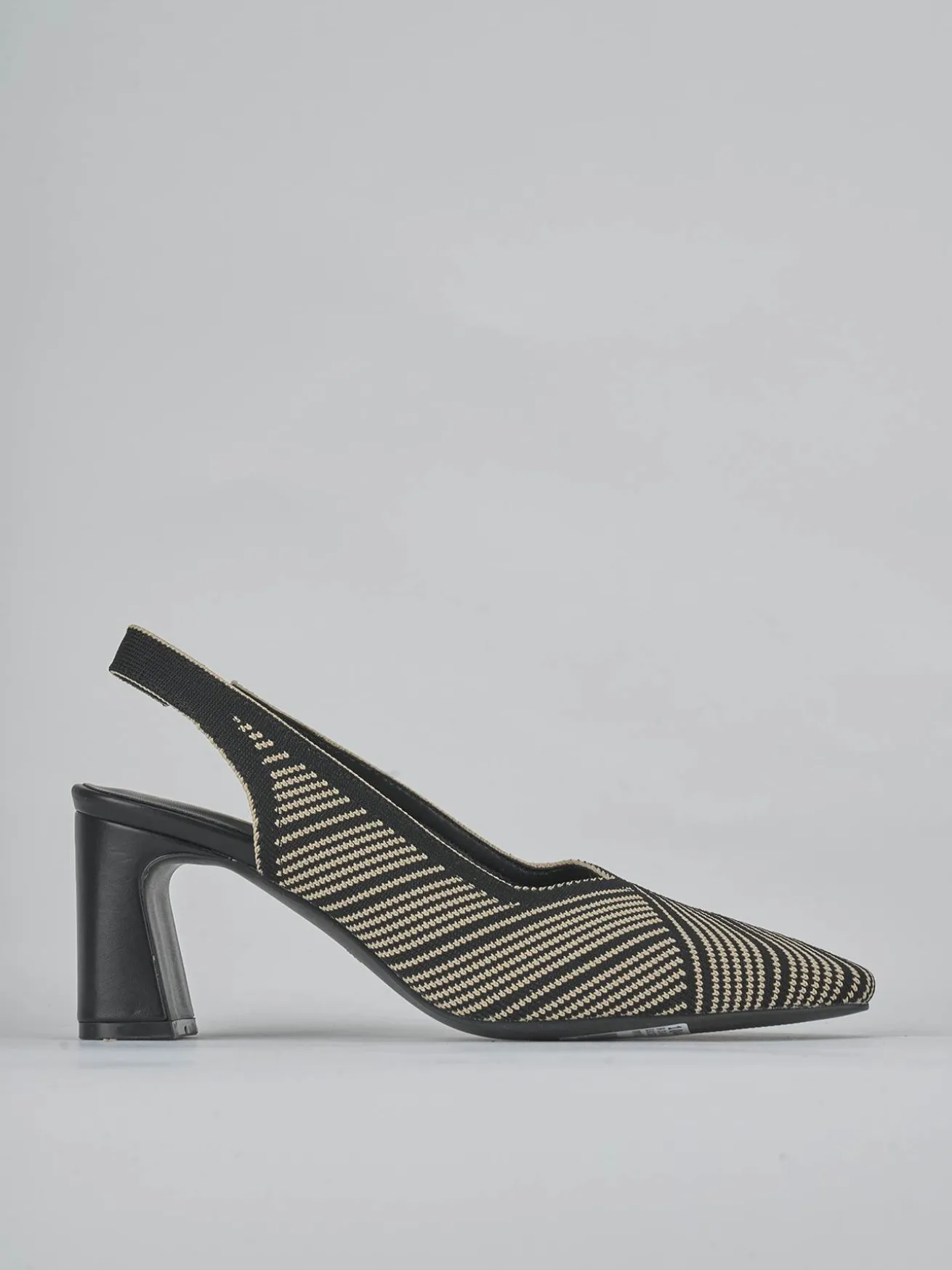 Slingback tacco 7 cm fondo in leggera gomma e soletto interno in vera pelle. Tomaia in morbida pelle ricoperta di tessuto, punta leggermente squadrata, puntale, scollo a ‘V’, cinturino elasticizzato e tacco grosso stabile per un look chic.