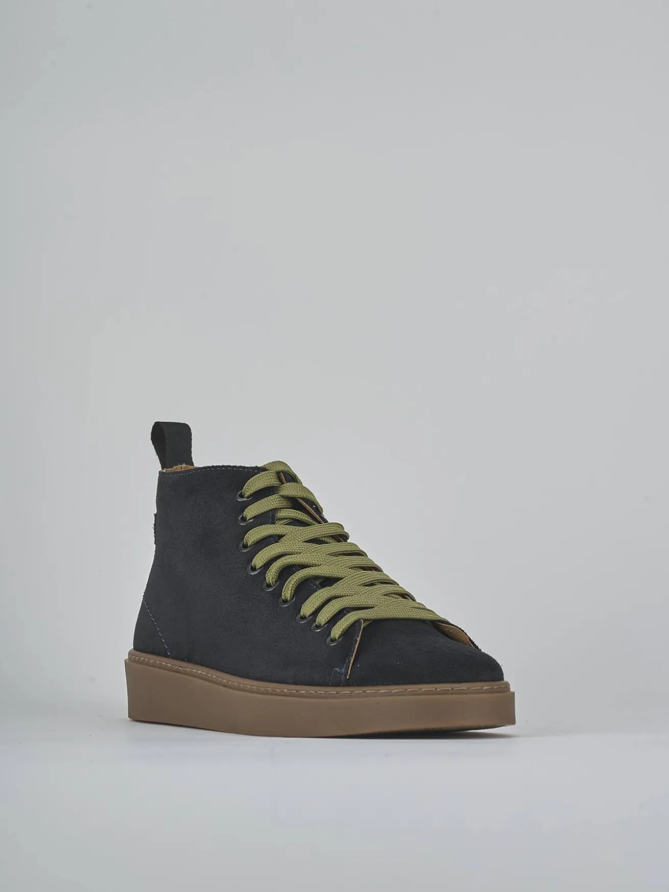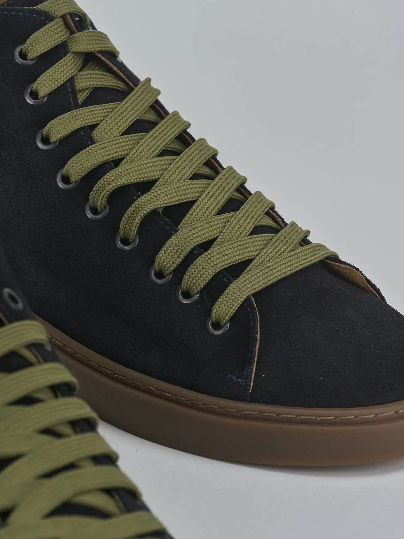 Le cuciture visibili e il contrasto tra lacci e fondo aggiungono un dettaglio stiloso e moderno.