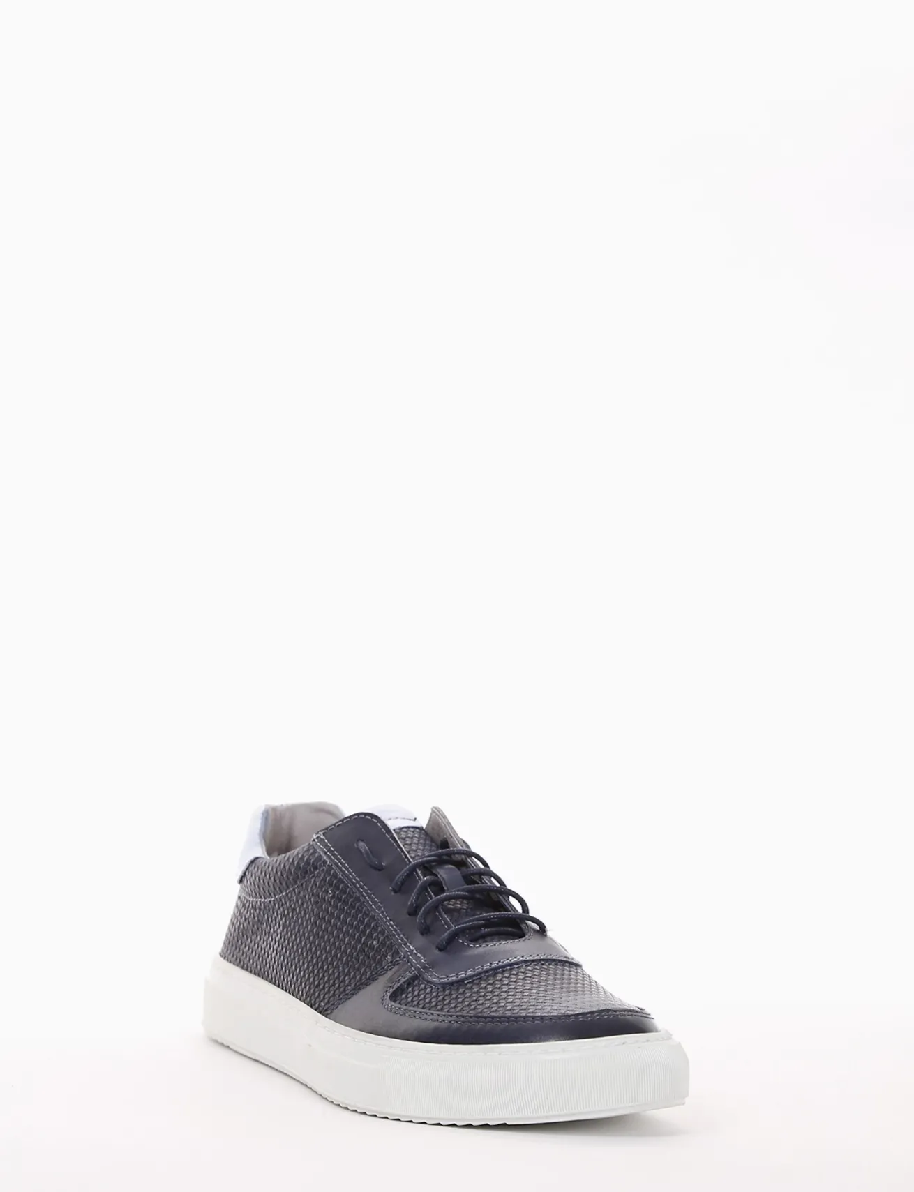 sneakers fondo in gomma e soletto interno in vera pelle. Tomaia in morbidissima pelle nappata intrecciata con particolarissima foratura su entrambi i lati blu