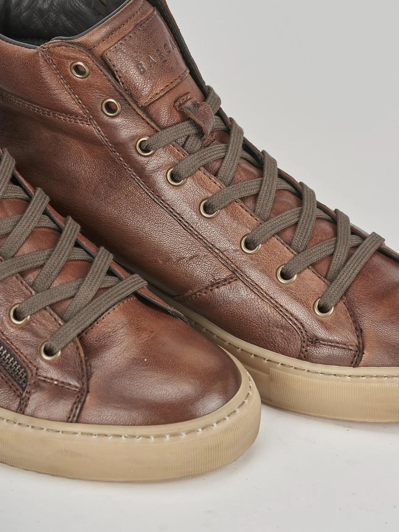 Realizzate con una tomaia in morbidissima pelle, queste sneakers alte offrono un look sportychic ideale per ogni occasione.