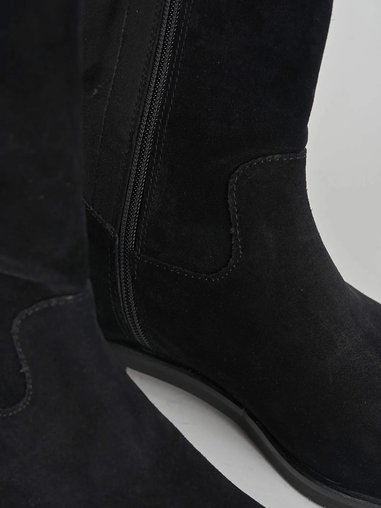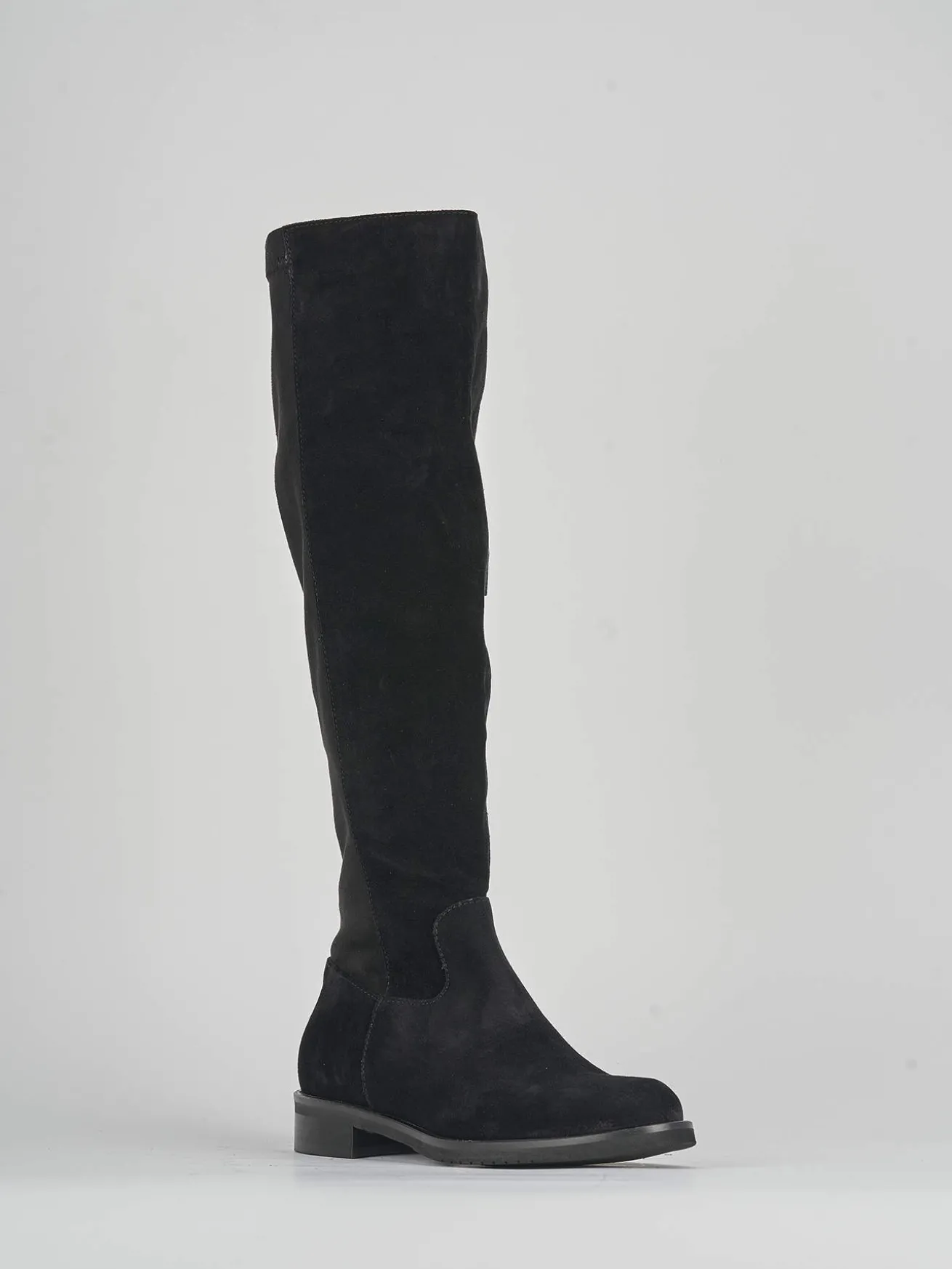 La tomaia è realizzata in morbidissimo camoscio, mentre il gambale elasticizzato si adatta perfettamente sotto il ginocchio, garantendo una vestibilità comoda per tutta la giornata.