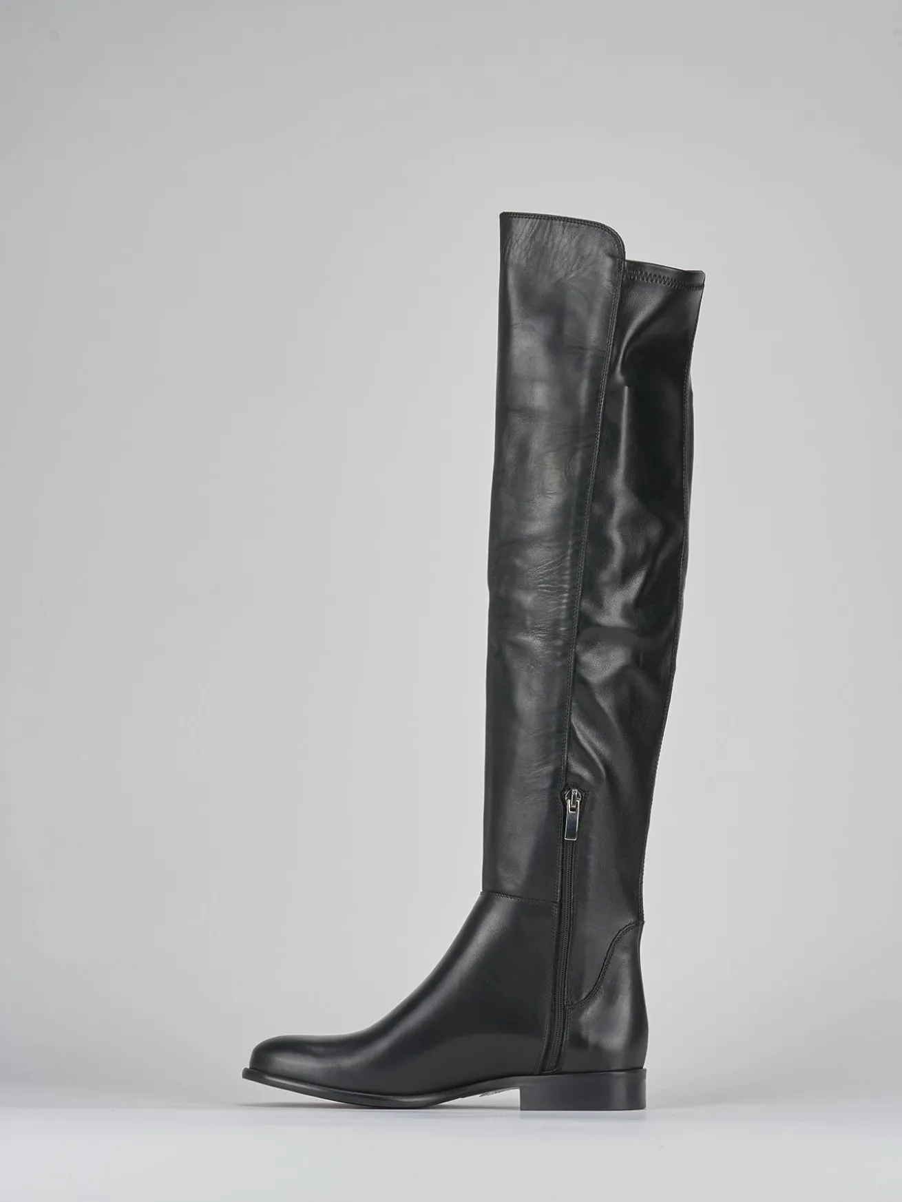L’altezza del gambale arriva appena sotto il ginocchio, mentre la pratica cerniera laterale aggiunge un tocco cool.