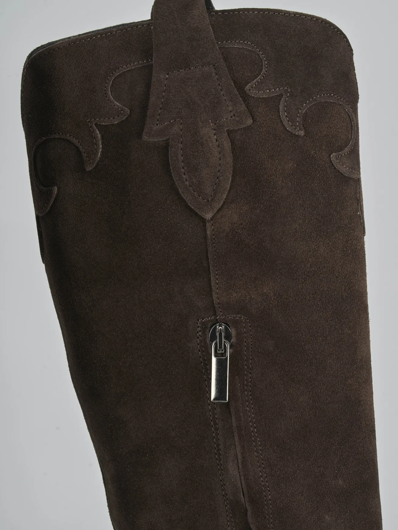 Realizzato in morbido camoscio color testa di moro, questo stivale da donna è un must-have per ogni guardaroba.