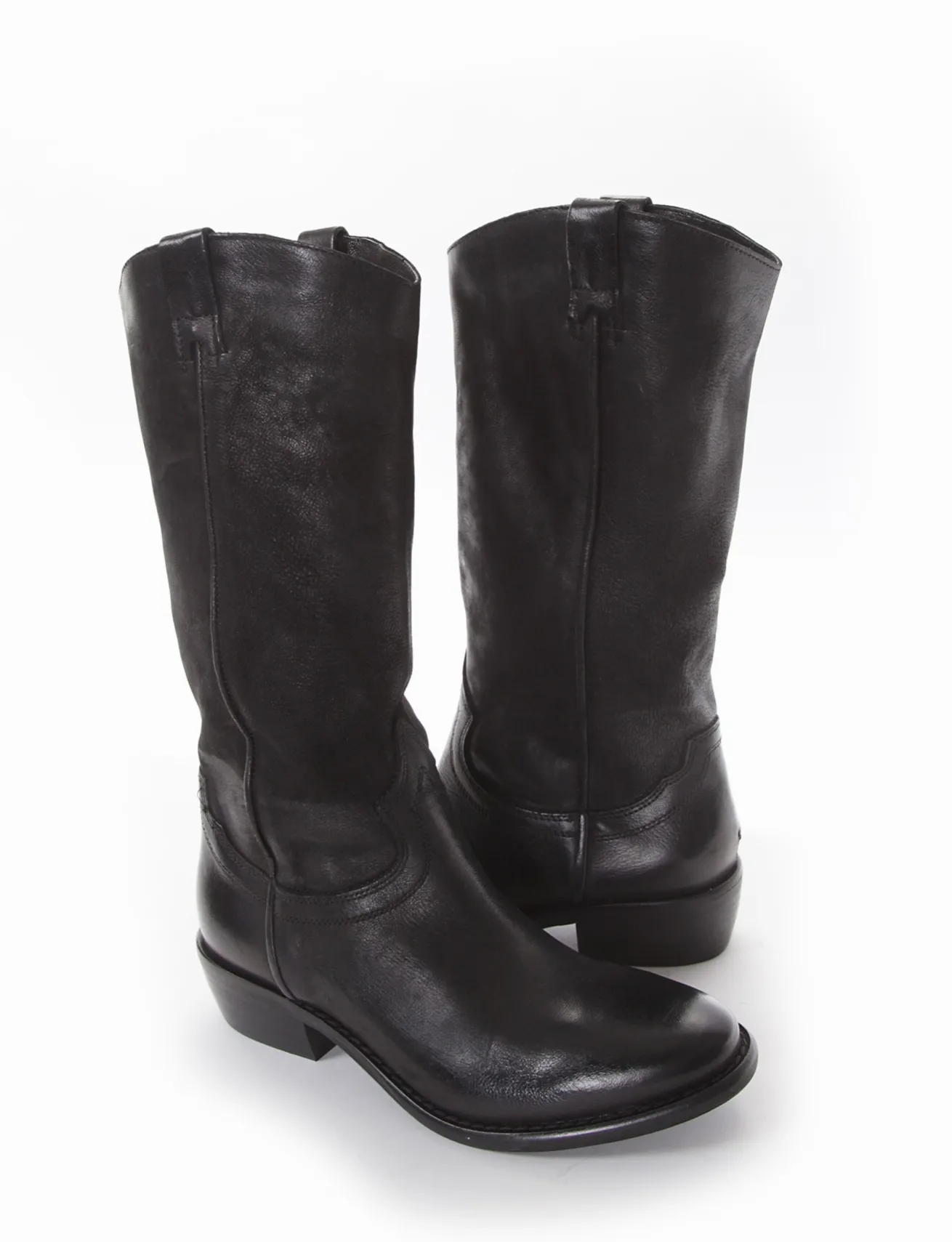 stivale texano tacco 3 cm, fondo in cuoio e soletto interno in vera pelle. Tomaia in morbidissima pelle nappata con punta arrotondata, gambale a tubo sotto il ginocchio.