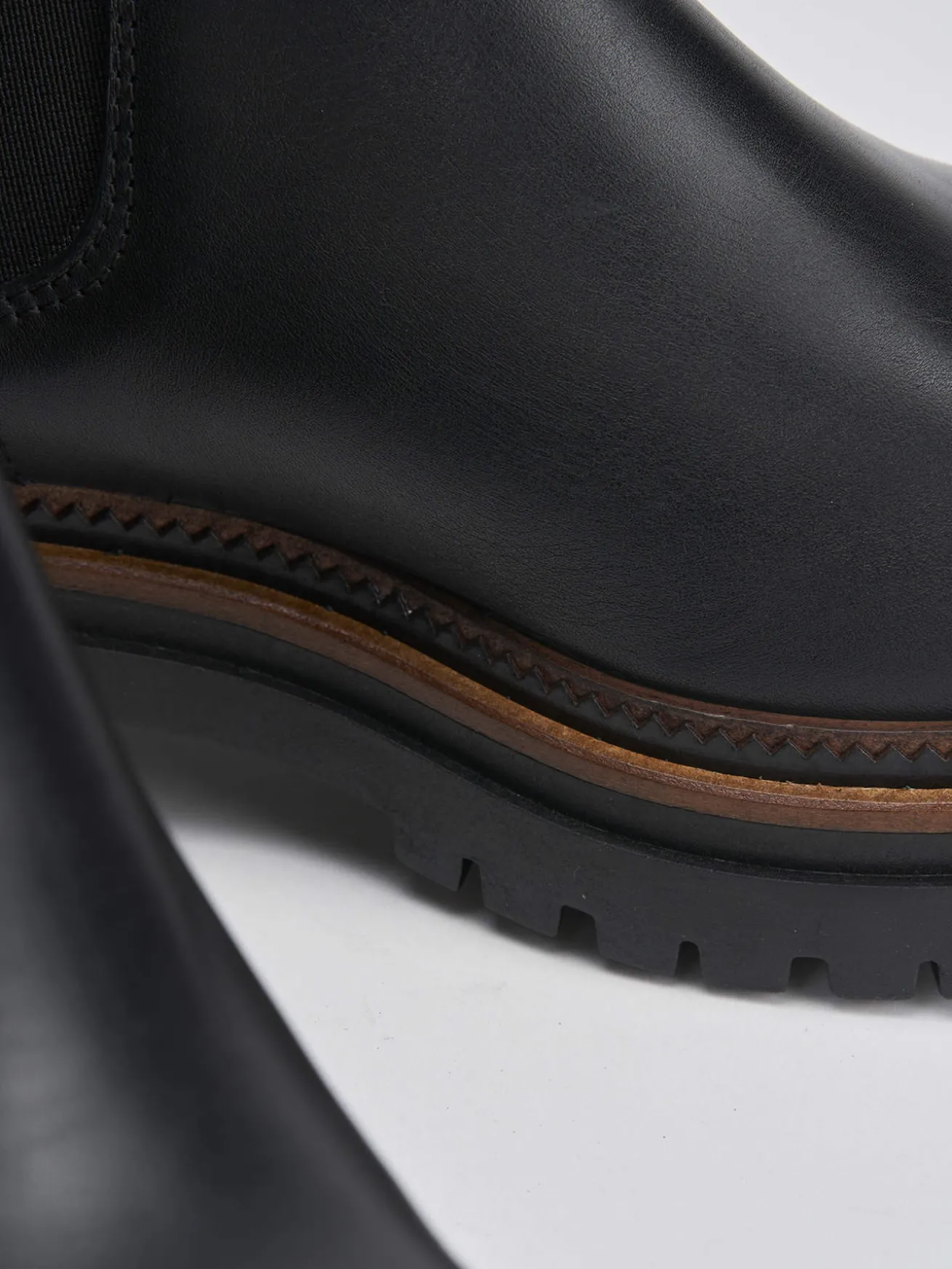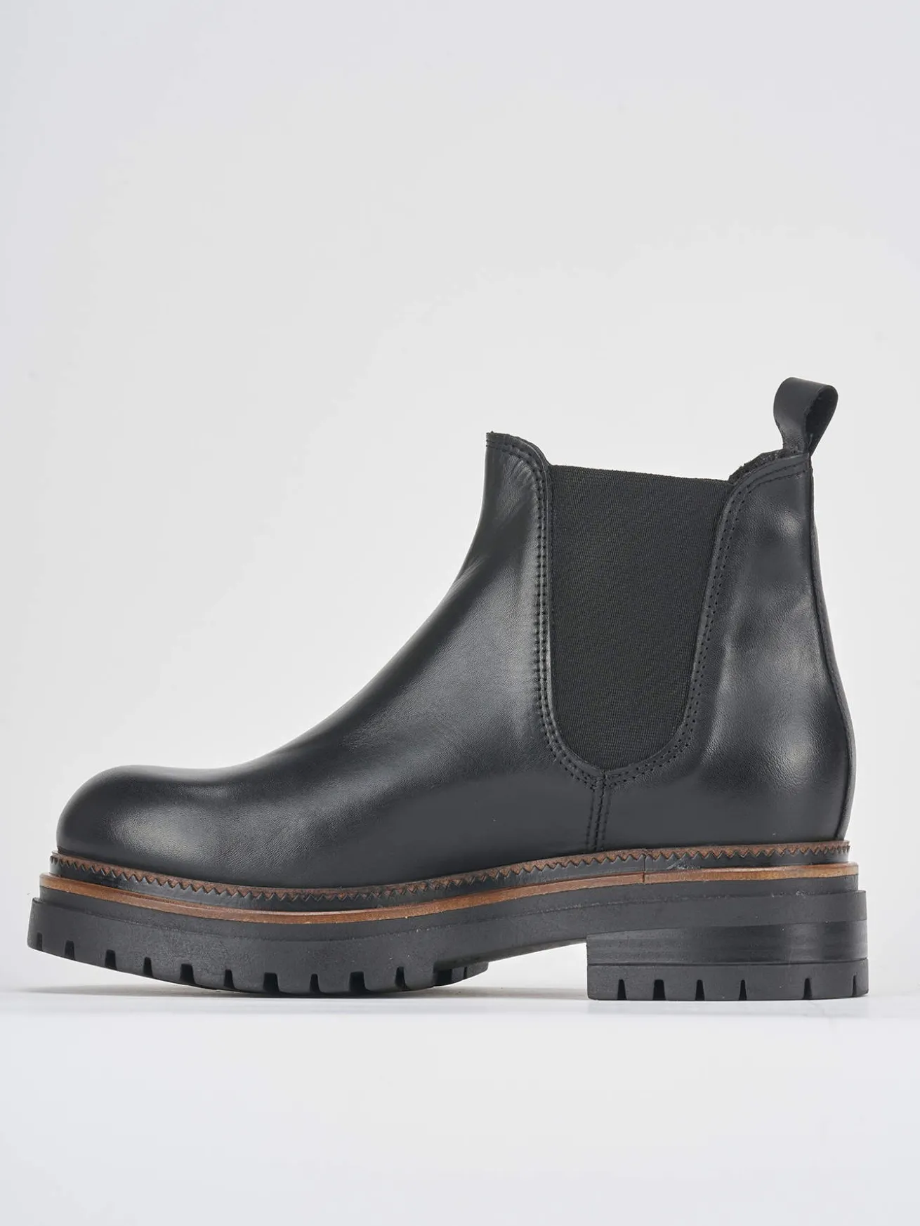 Tronchetto tacco 2 cm fondo in gomma e soletto interno in vera pelle. Tomaia in morbida pelle, punta tonda, lati elasticizzati e anello per una facile calzata. Dettaglio del bordo del fondo a contrasto per un un look davvero cool.