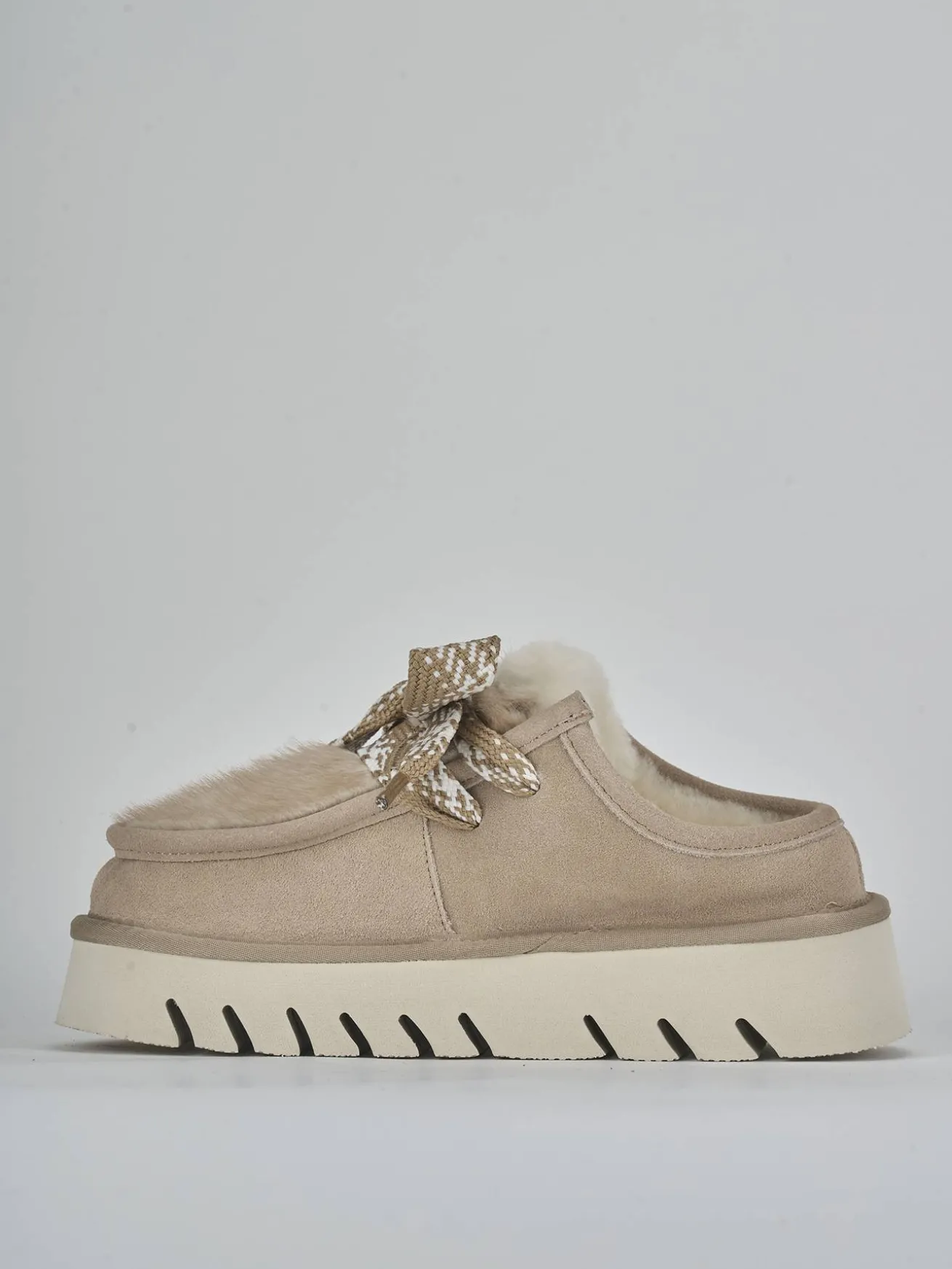 Realizzati in morbido camoscio beige, questi sabot con tacco di 3 cm offrono un supporto ideale per le giornate dinamiche.