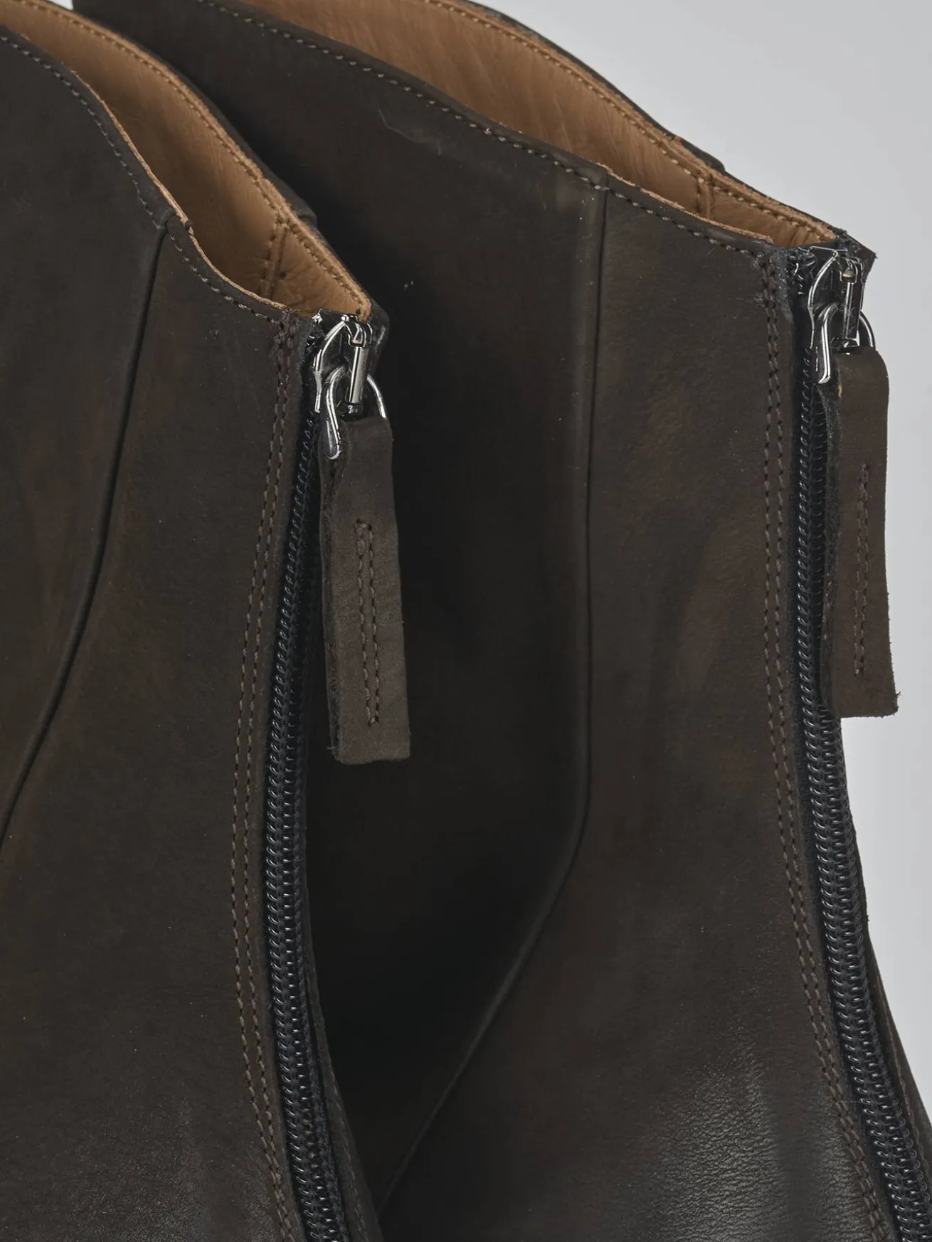 La tomaia in morbida pelle nabuk presenta una punta affusolata e cuciture visibili che aggiungono un tocco di raffinatezza.