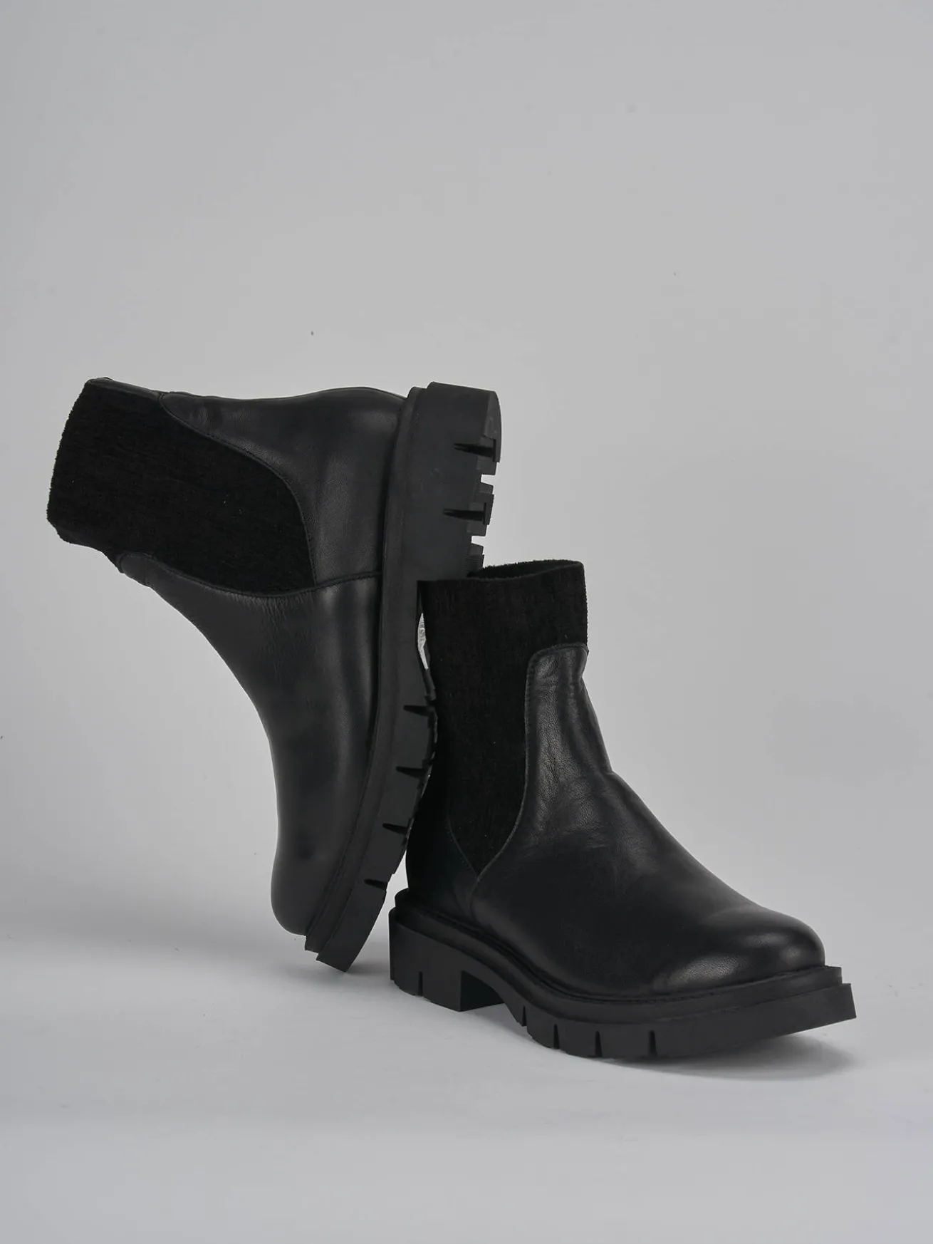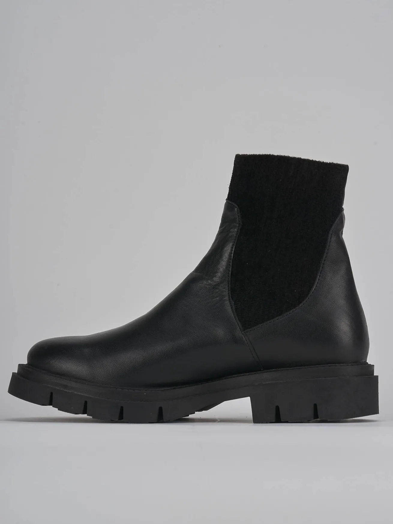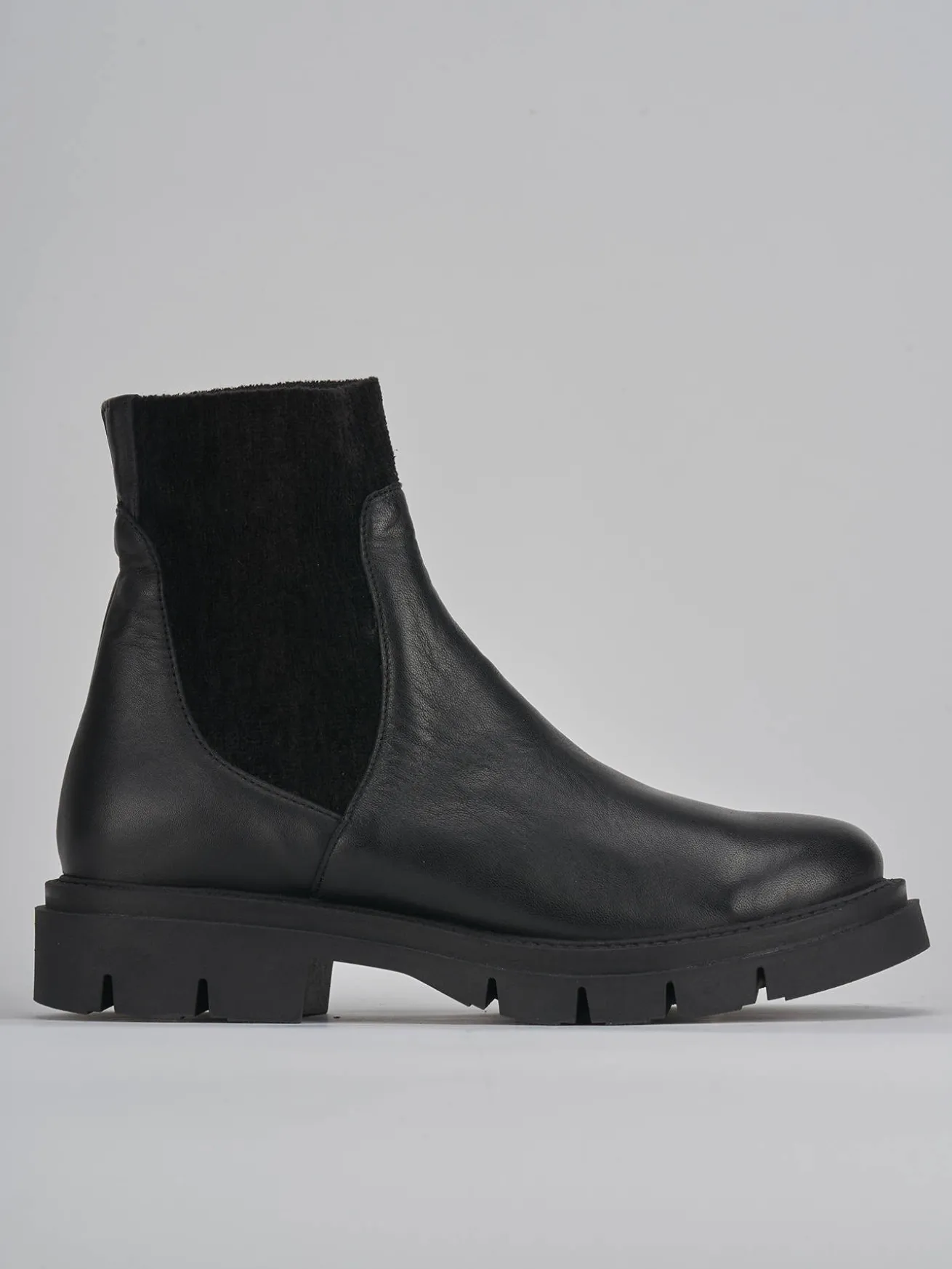 stivaletto tacco 4 cm fondo in gomma e soletto interno in vera pelle. tomaia in morbida pelle, punta tonda, lati elasticizzati in velluto fino alla caviglia per un tocco chic ai tuoi look.