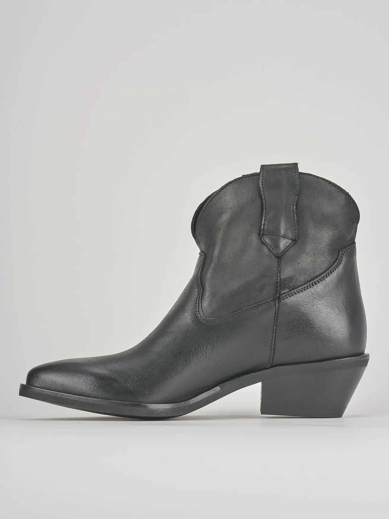 stivaletto tacco 4 cm fondo in gomma e soletto interno in vera pelle. tomaia in morbida pelle, punta sfilata, liscio, texano, ghette per un look cool.