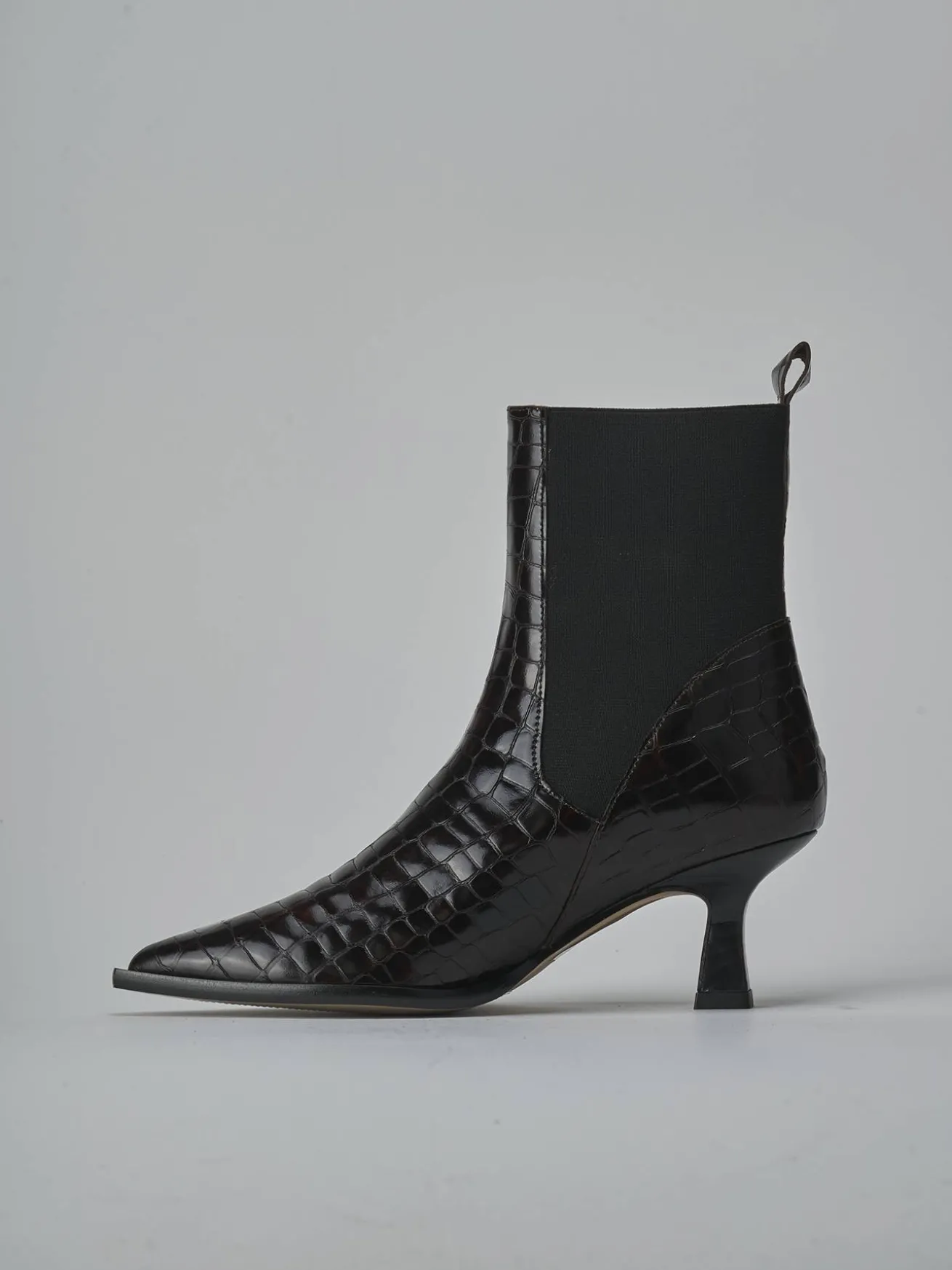 Il guardolo sporgente e il nuovissimo tacco rocchetto in materiale ABS completano l’estetica raffinata di questi stivaletti.