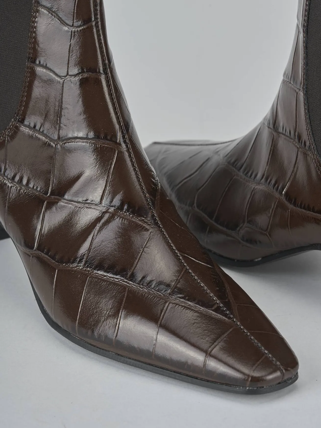 La punta sfilata e le cuciture visibili aggiungono dettagli di stile unici.