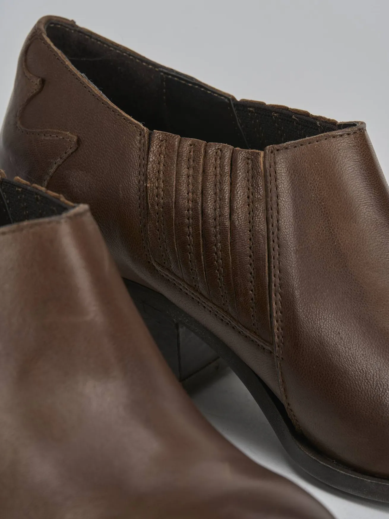 La punta sfilata aggiunge un tocco di modernità, mentre la parte laterale elasticizzata con strisce e ricami offre un dettaglio unico e raffinato.