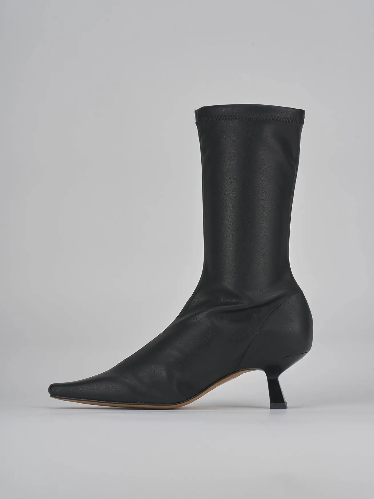 tronchetto tacco 5 cm fondo in gomma e soletto interno in vera pelle. tomaia in morbida pelle elasticizzata, punta sfilata e nuovissimo tacco rocchetto. altezza gambale a metà polpaccio che grazie alla tomaia regala una maggiore adattabilità. dal design senza tempo, è perfetto con qualsiasi tuo outfit.