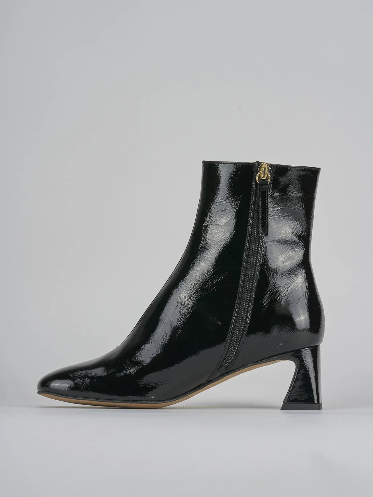 La tomaia in morbida pelle effetto verniciato dona un tocco di lucentezza e raffinatezza.