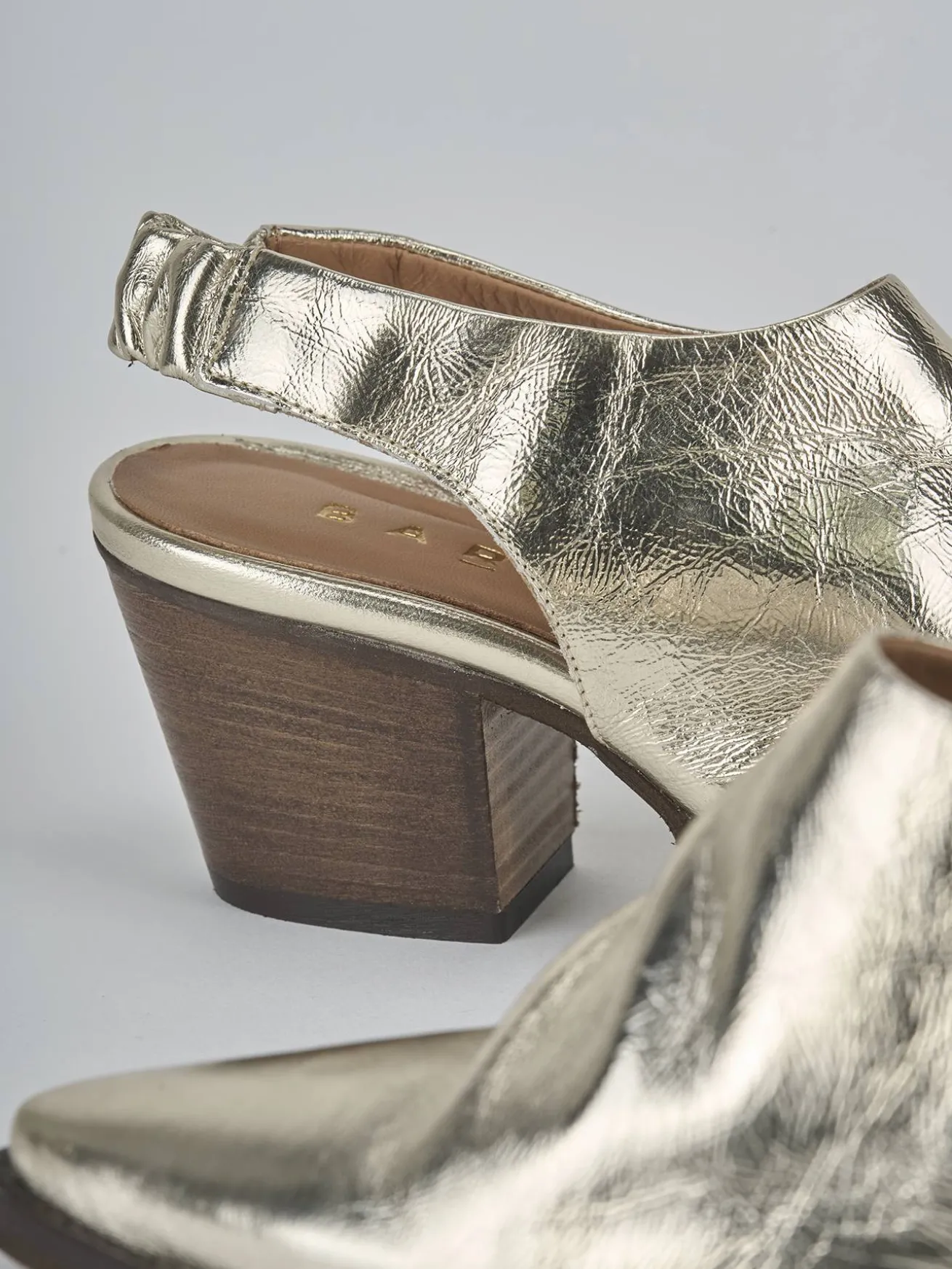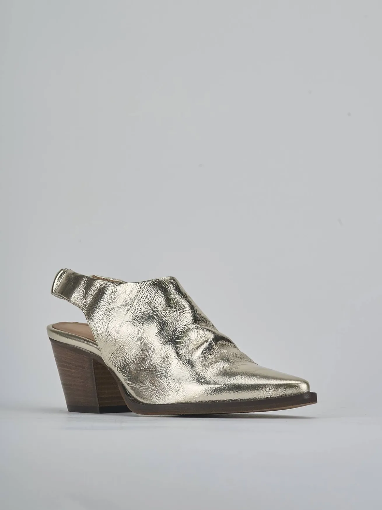 Slingback decolte’ tacco 6 cm fondo in leggera gomma e soletto interno in vera pelle. Tomaia in morbida pelle laminata, punta sfilata, cinturino elasticizzato per una calzata su misura e tacco grosso. Guardolo leggermente sporgente per un look che ti farà notare.