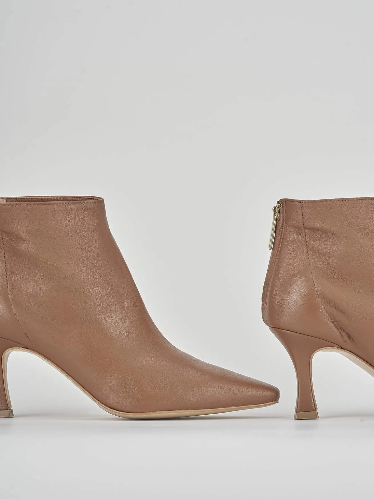 Stivaletto tacco 7 cm fondo in cuoio e soletto interno in vera pelle. tomaia in morbida pelle nappata, punta sfilata, cerniera posteriore super-chic per il massimo del comfort.
