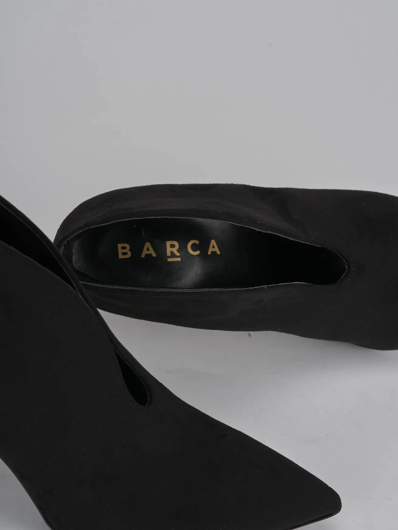 stivaletto tacco 7 cm fondo in gomma e soletto interno in vera pelle. tomaia in morbido camoscio, punta sfilata, apertura profonda sul collo del piede, svasato e tacco fino. perfetto per le tue serate più importanti.