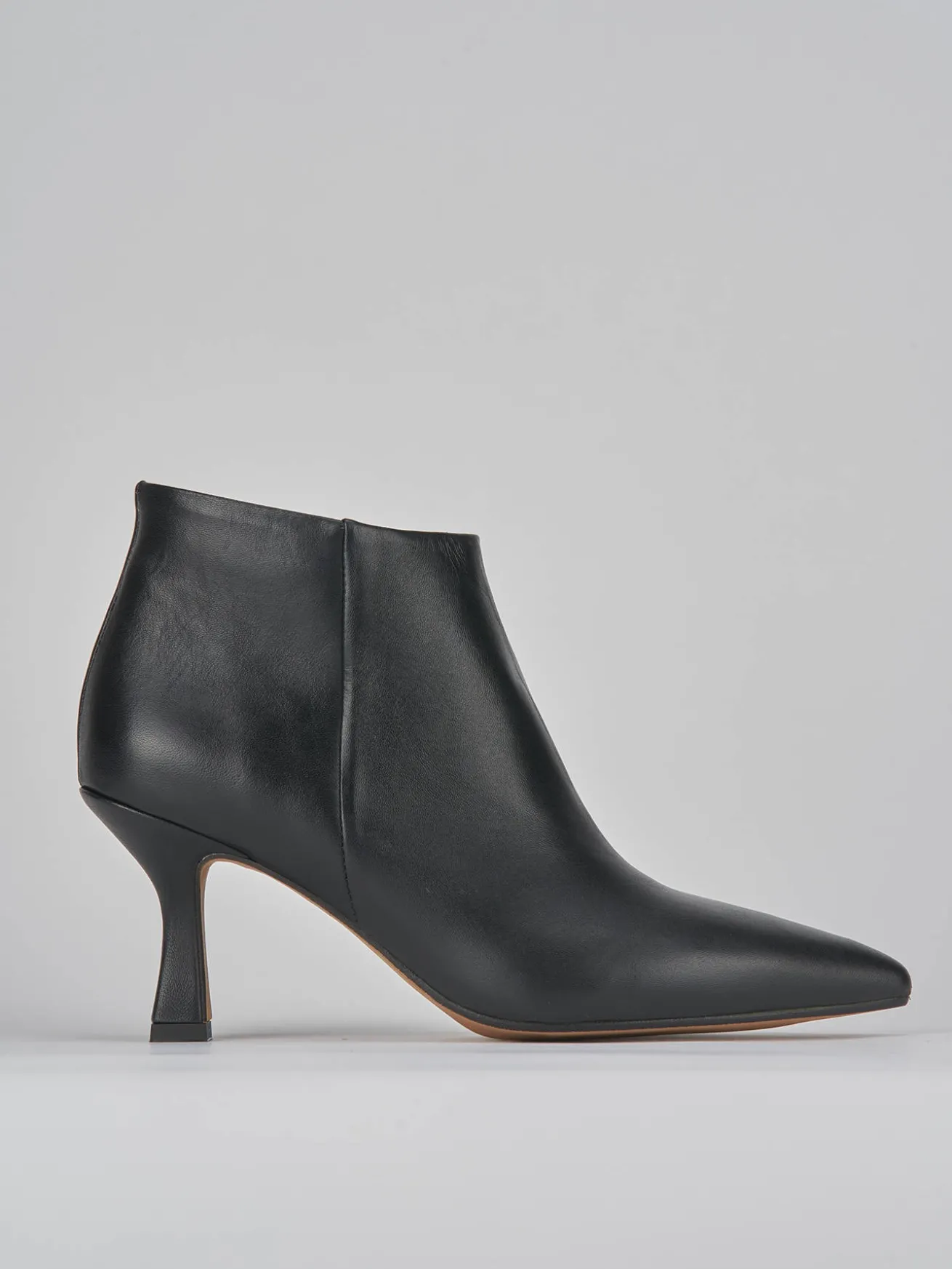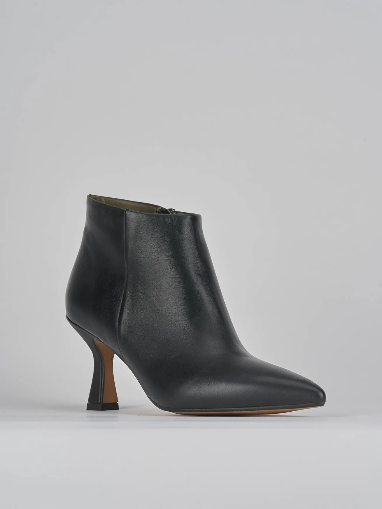 Stivaletto tacco 7 cm fondo in gomma e soletto interno in vera pelle. Tomaia in morbida pelle di ottima qualità, punta sfilata, cerniera laterale e tacco a rocchetto per un look di classe.