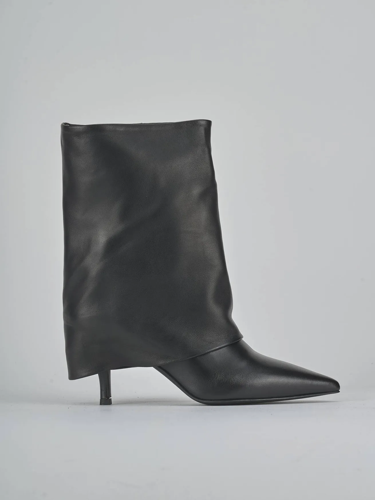 La tomaia in morbida pelle nappata avvolge il piede con un risvolto fino al tallone, mentre la punta sfilata dona un aspetto sofisticato.