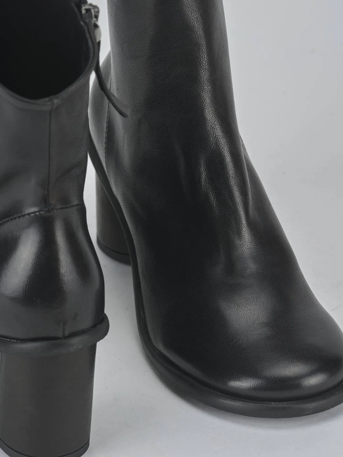 Le cuciture visibili e l’altezza del gambale fino al polpaccio conferiscono un carattere deciso e moderno.