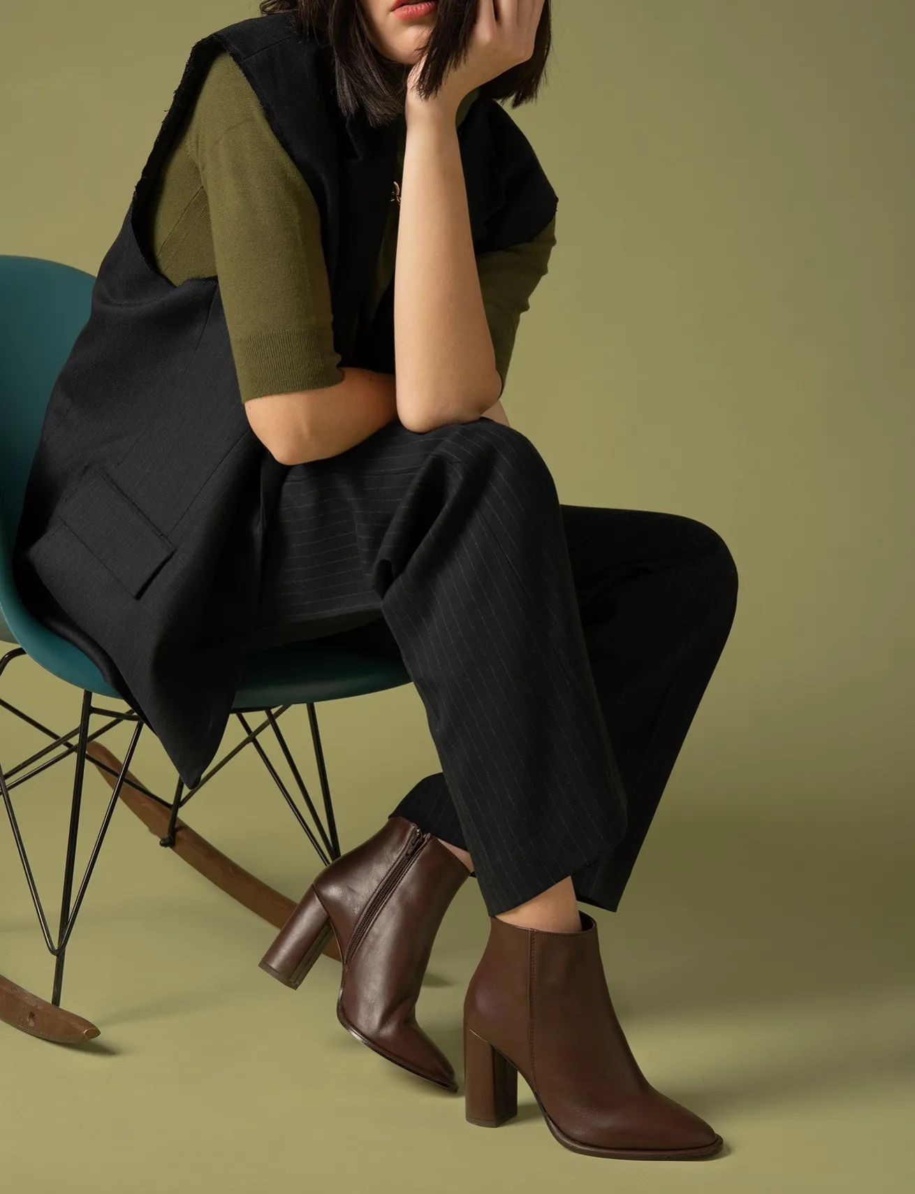 Stivaletto tacco 8 cm fondo in leggera gomma e soletto interno in vera pelle. tomaia in morbida pelle nappata, punta sfilata e con guardolo sporgente stondato, cerniera laterale, cuciture a vista e tacco grosso per un look chic.