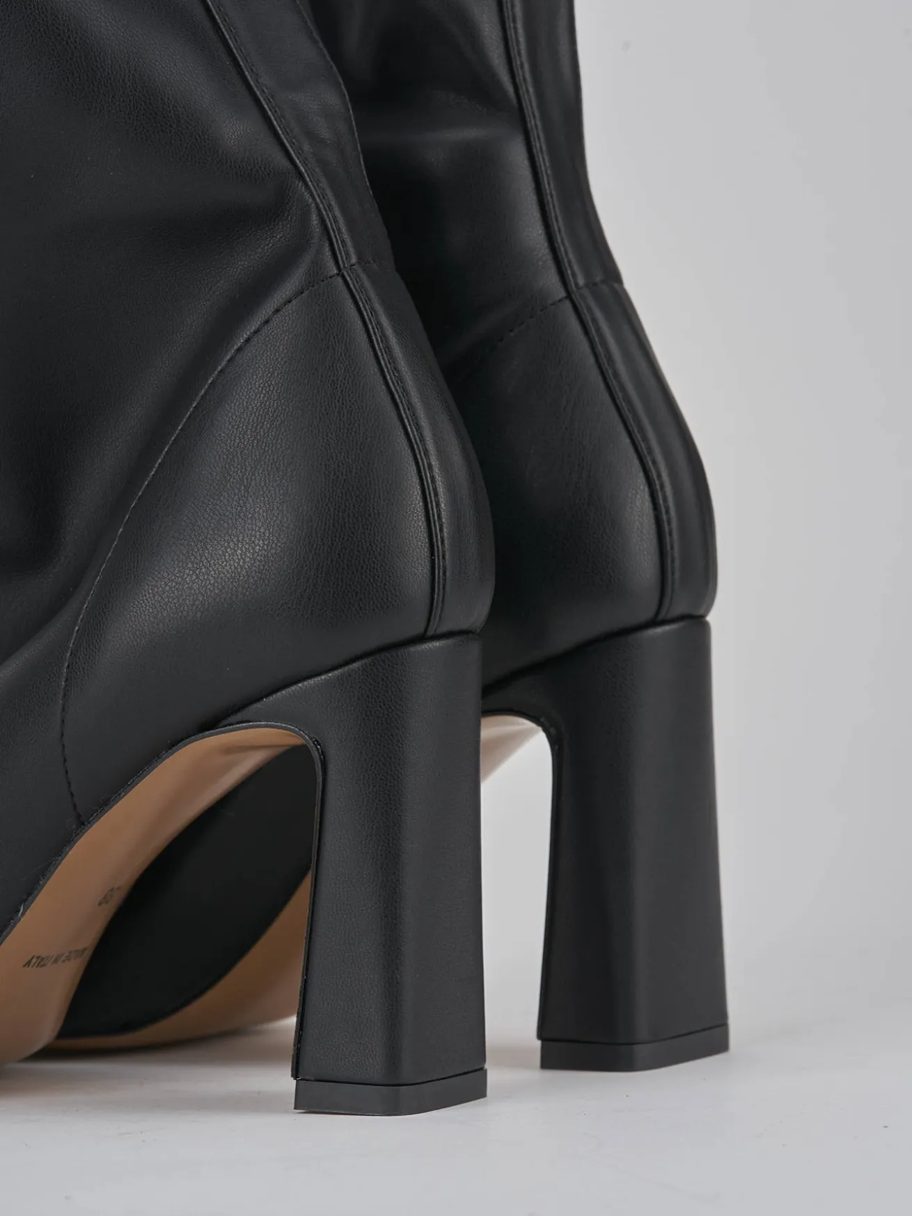 Stivaletto tacco 9 cm fondo in leggerissima gomma e soletto interno in vera pelle. tomaia in morbida pelle elasticizzata, aderente alla forma del piede, punta leggermente squadrata, anello per facilitare la calzata e tacco fino per un look cool.