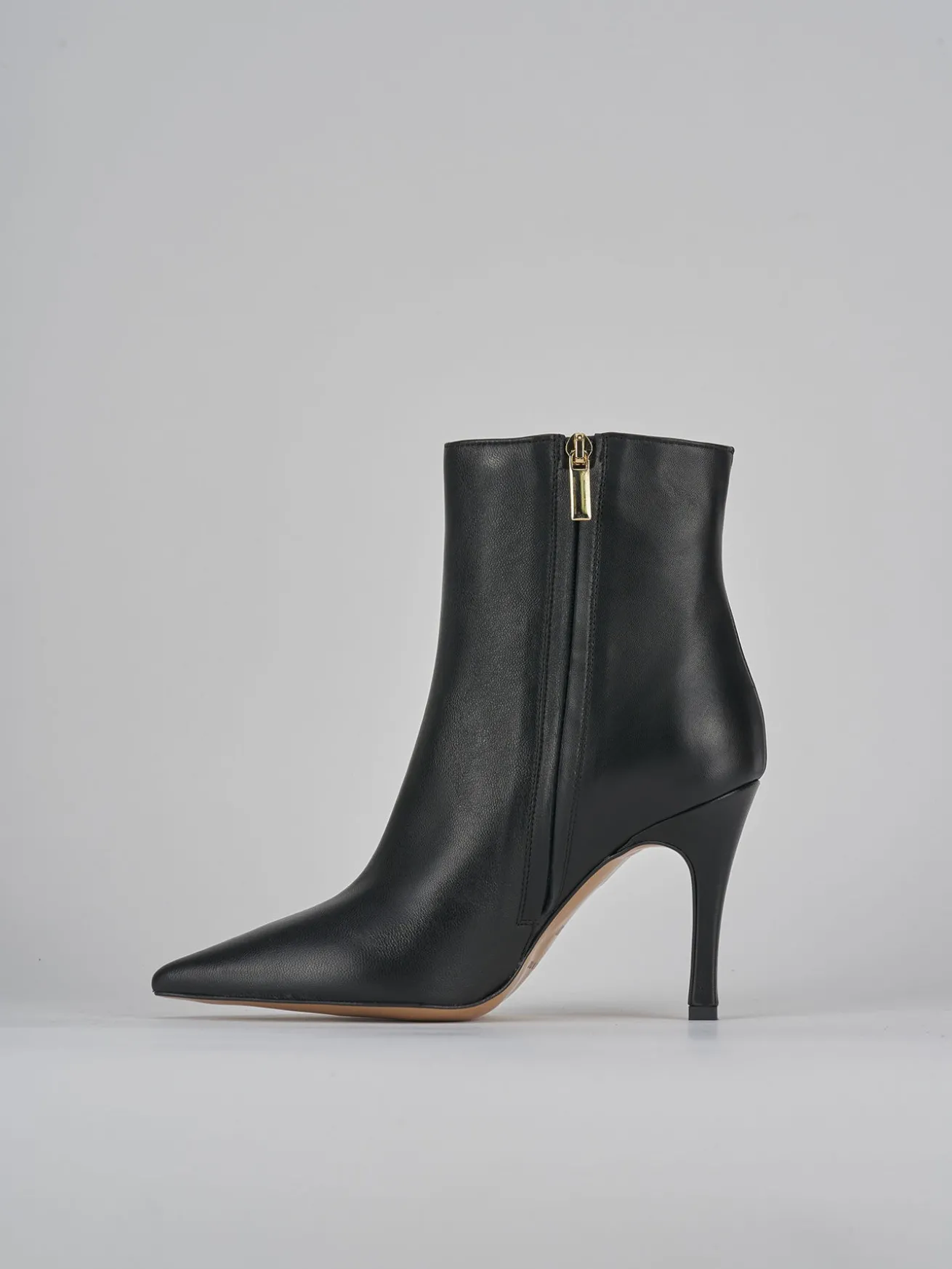 Stivaletto tacco 9 cm fondo in leggera gomma e soletto interno in vera pelle. tomaia in morbida pelle, punta sfilata, cerniera laterale e tacco fino. dalle linee eleganti e versatili per ogni tuo look.