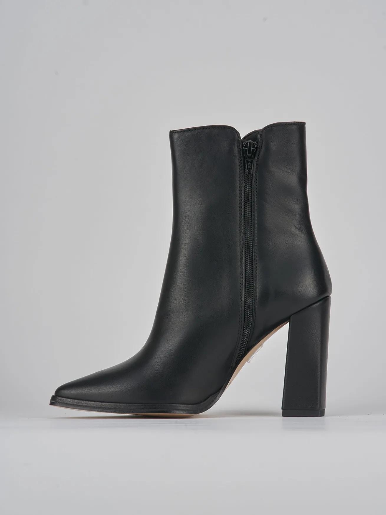 La punta sfilata aggiunge un tocco di raffinatezza, mentre il tacco grosso garantisce stabilità e stile.