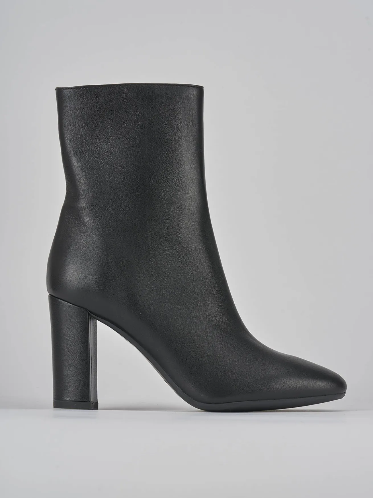 Realizzato in morbida pelle nera, questo stivaletto si distingue per la sua punta sfilata e il design sofisticato.