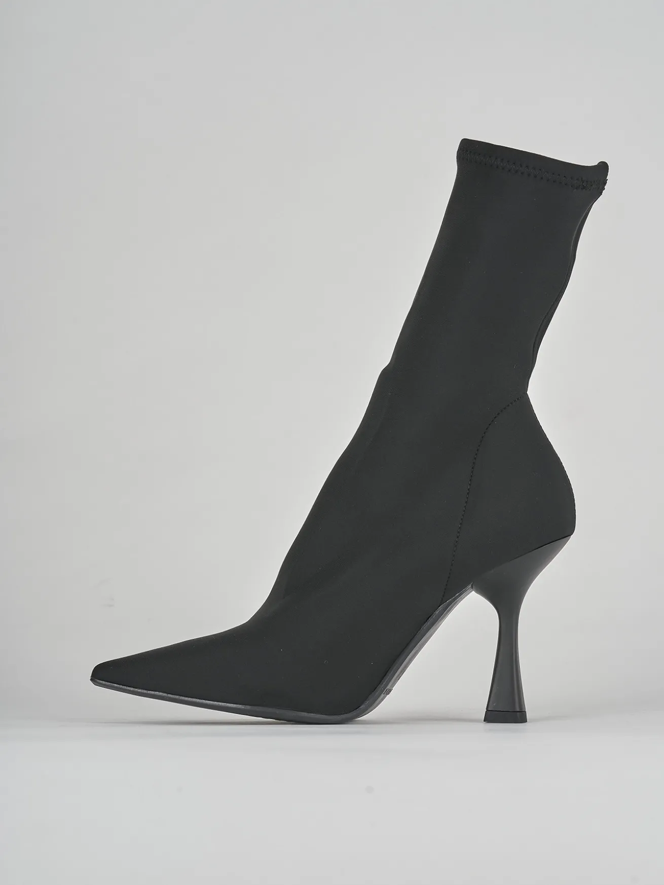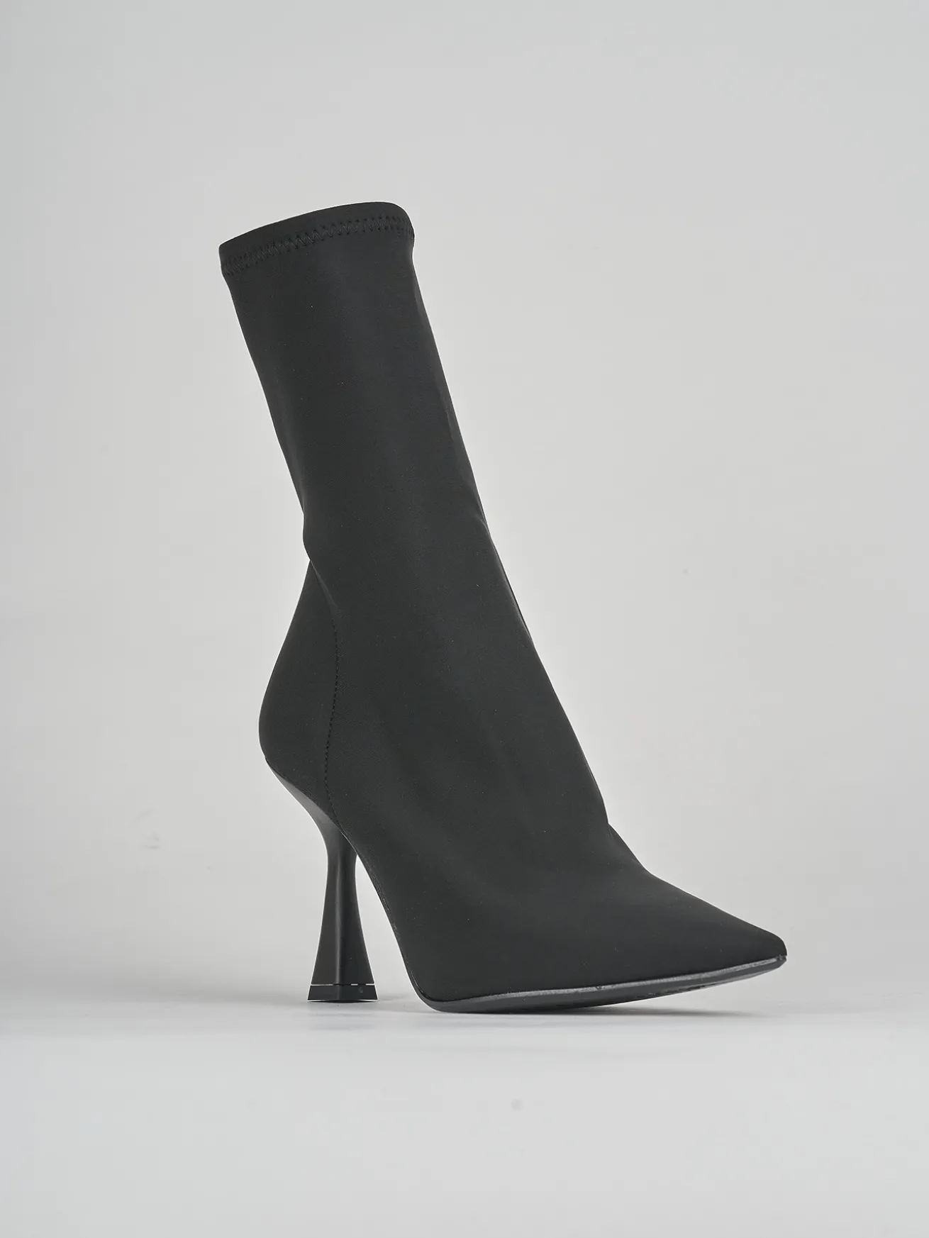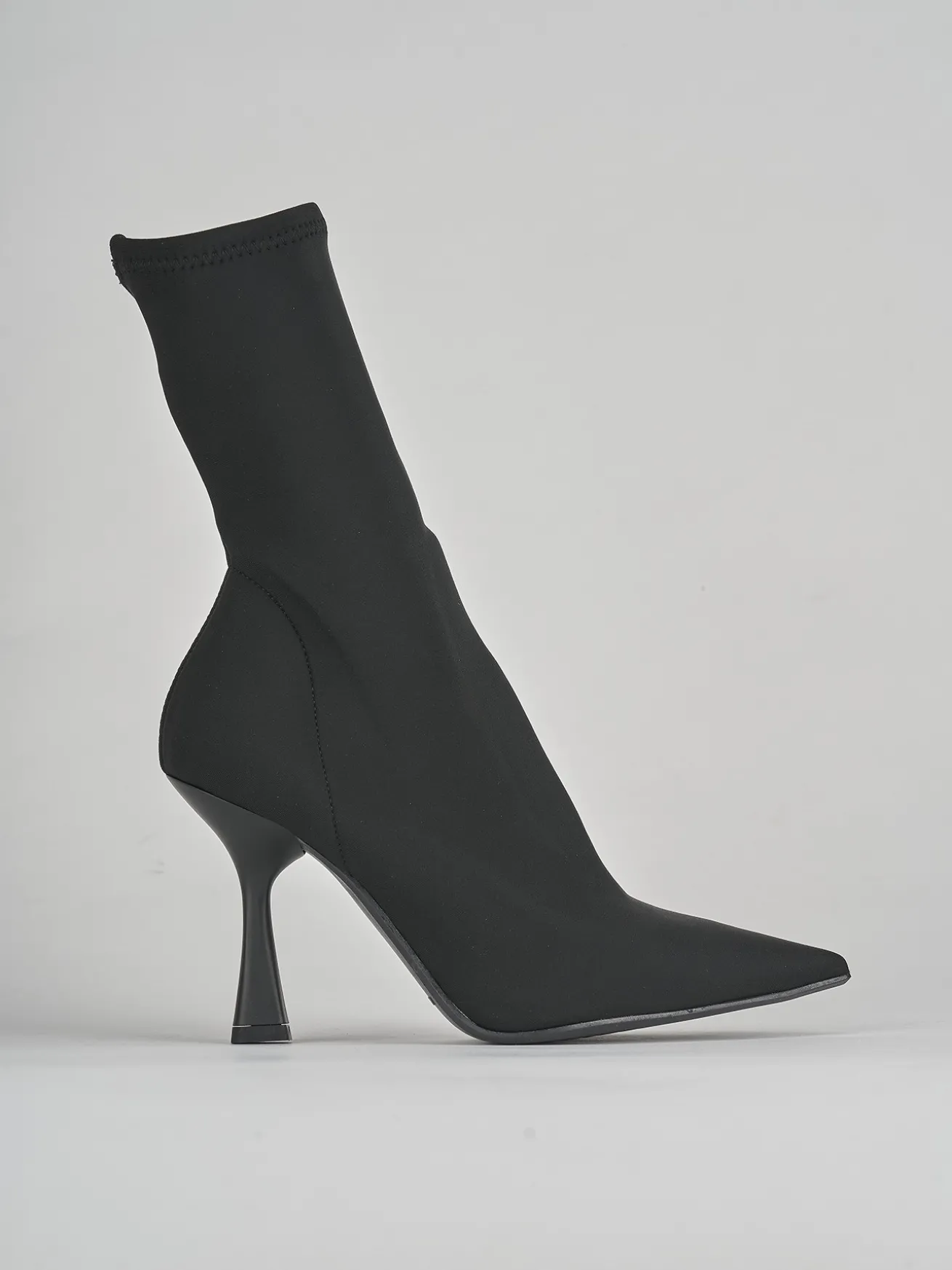 Realizzati in tessuto nero, questi tronchetti presentano un tacco alto di 9 cm che esalta la femminilità e dona un tocco di classe al tuo outfit.