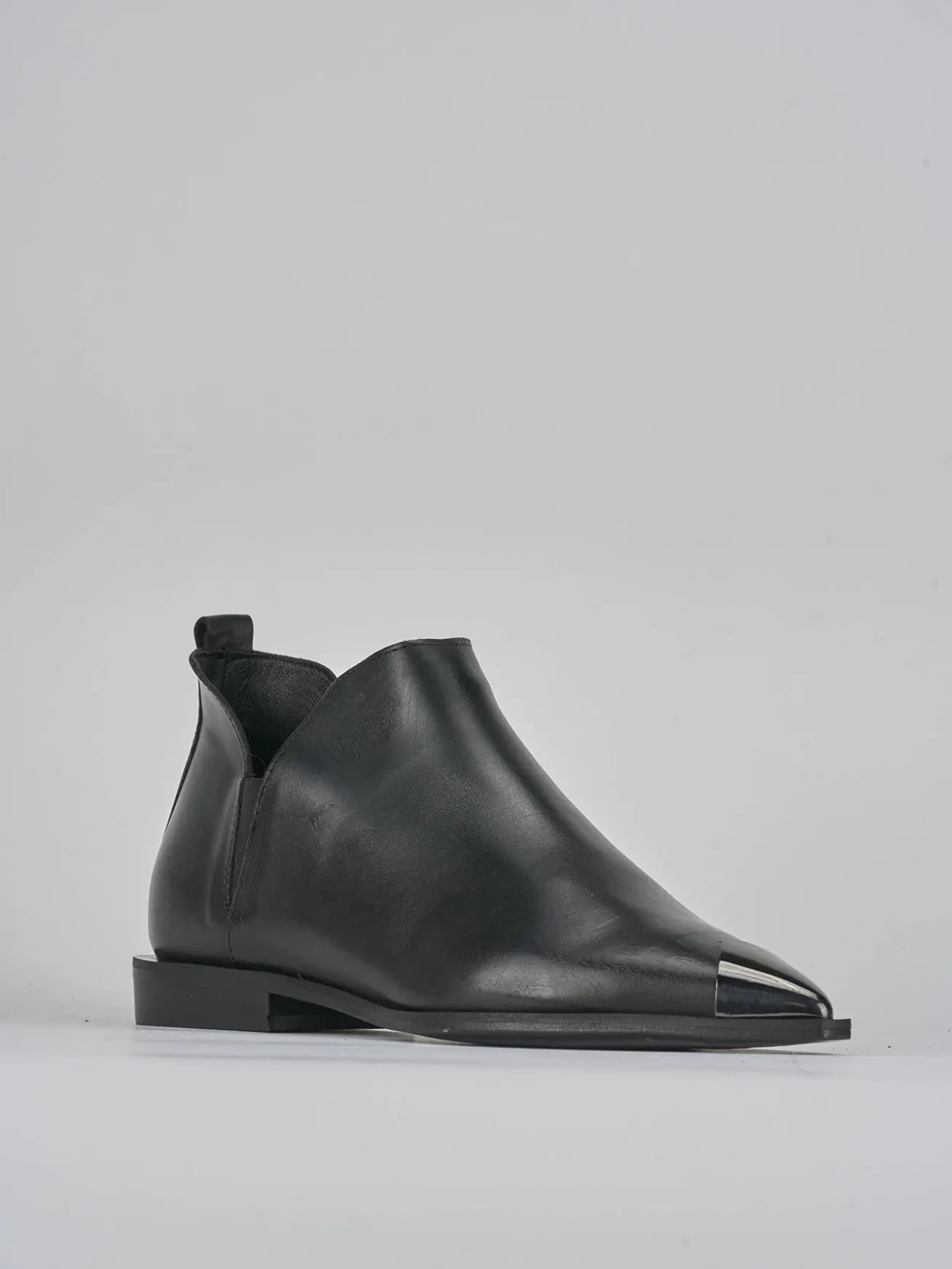 Stivaletto tacco 2 cm, fondo in leggera gomma e soletto interno in vera pelle. Tomaia in morbida pelle, punta sfilata, puntale in metallo, apertura sui lati con piccola fascia elastica per facilitare la calzata. Ideale per ogni tuo look.