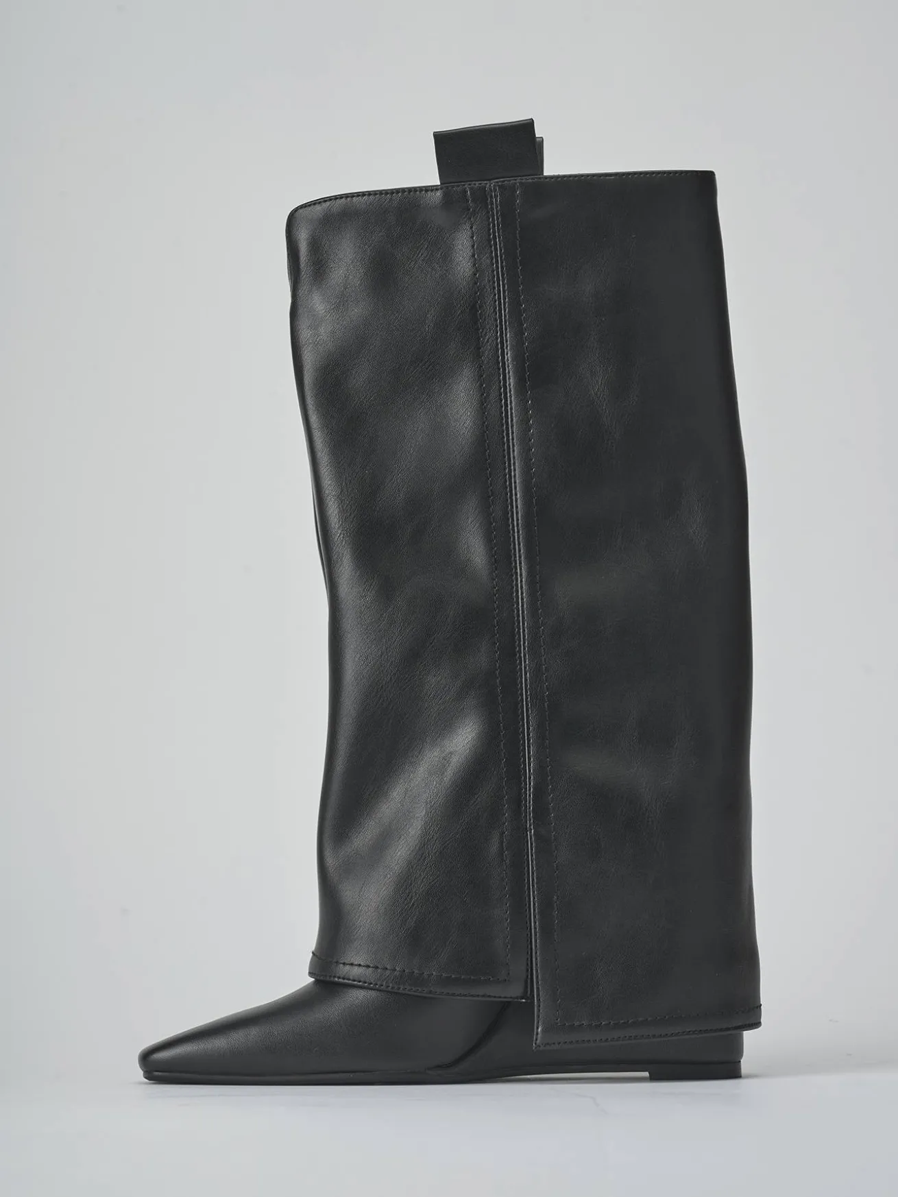 Le cuciture raffinate sul gambale, che si ferma appena sotto il ginocchio, offrono una vestibilità perfetta, mentre il risvolto e le ghette mantengono la struttura impeccabile dello stivale.