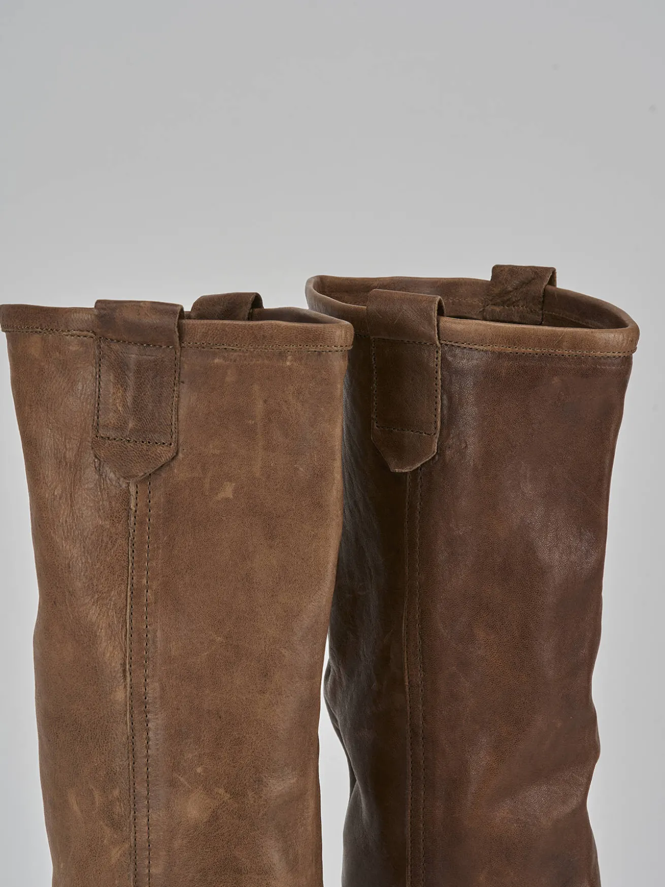 Le cuciture fatte a mano sul gambale, che si ferma appena sotto il ginocchio, aggiungono un tocco di artigianalità e stile.
