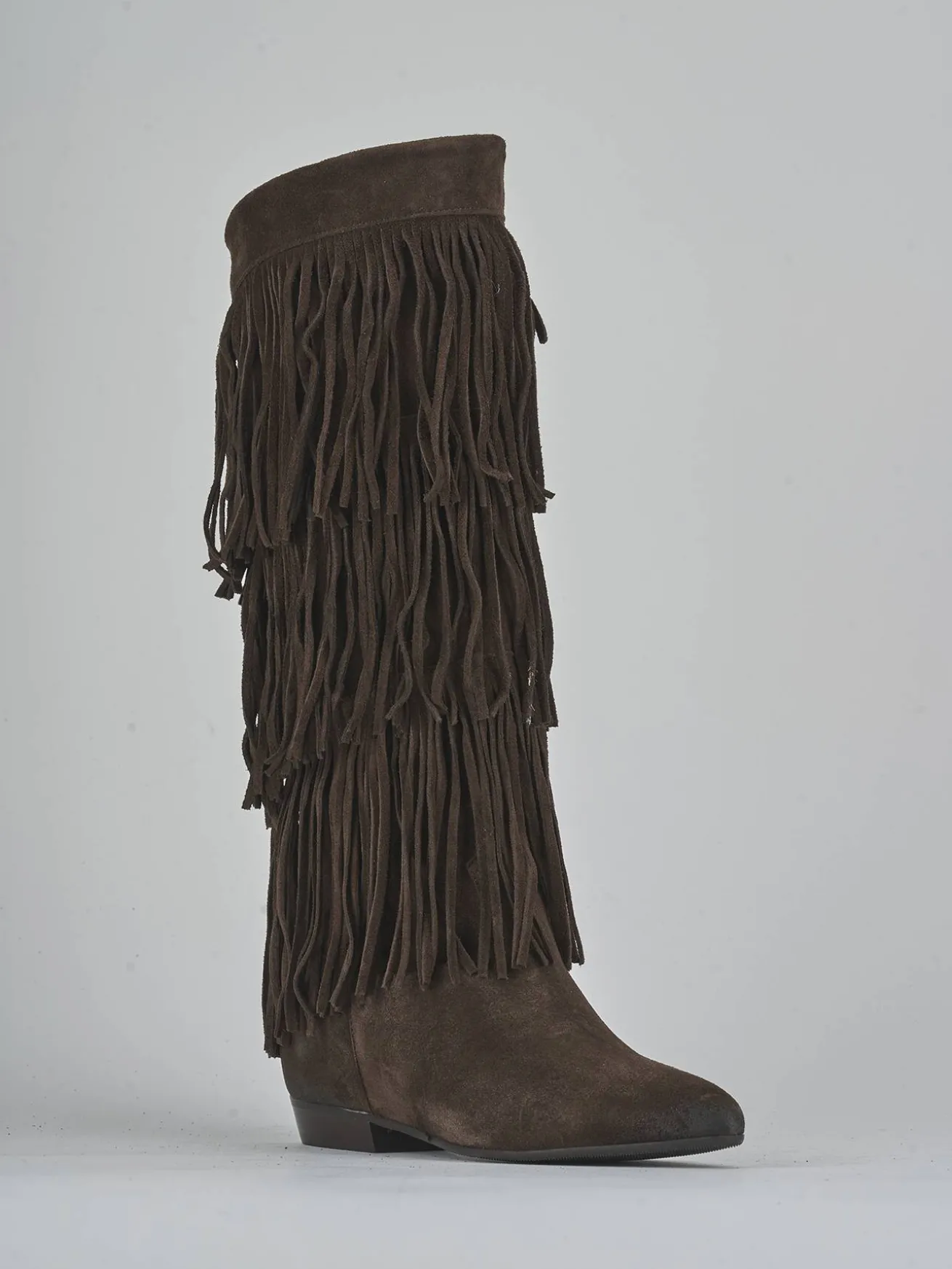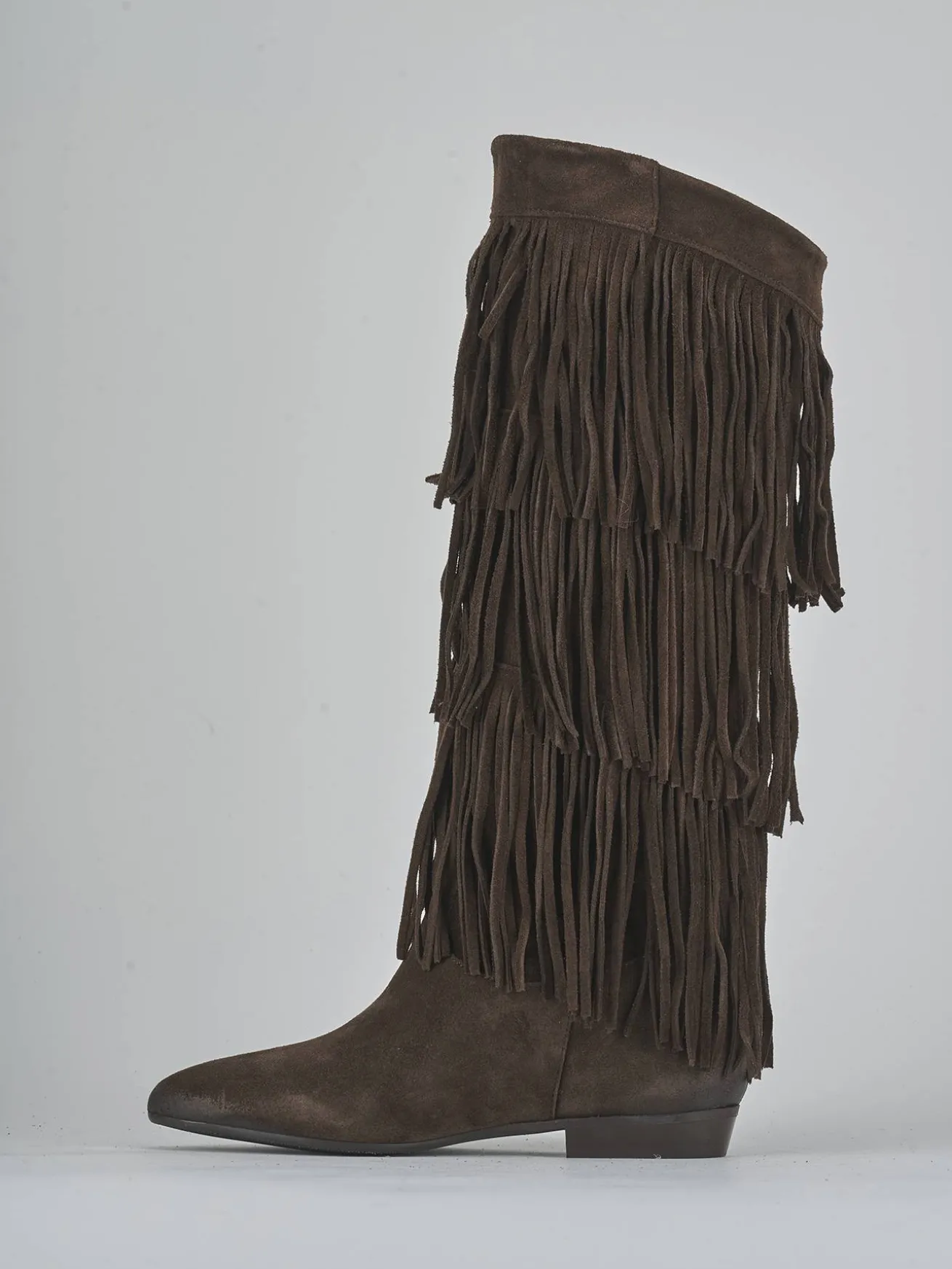 Le frange sul gambale, che si fermano appena sotto il ginocchio, donano movimento e stile a ogni passo.