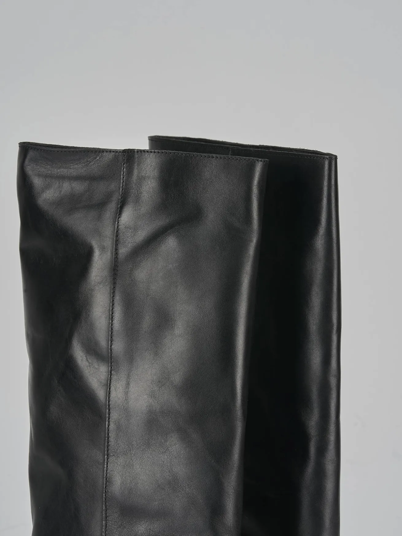 Realizzati in morbida pelle, questi stivali presentano una punta affusolata e cuciture eleganti lungo il gambale, che si ferma appena sotto il ginocchio.