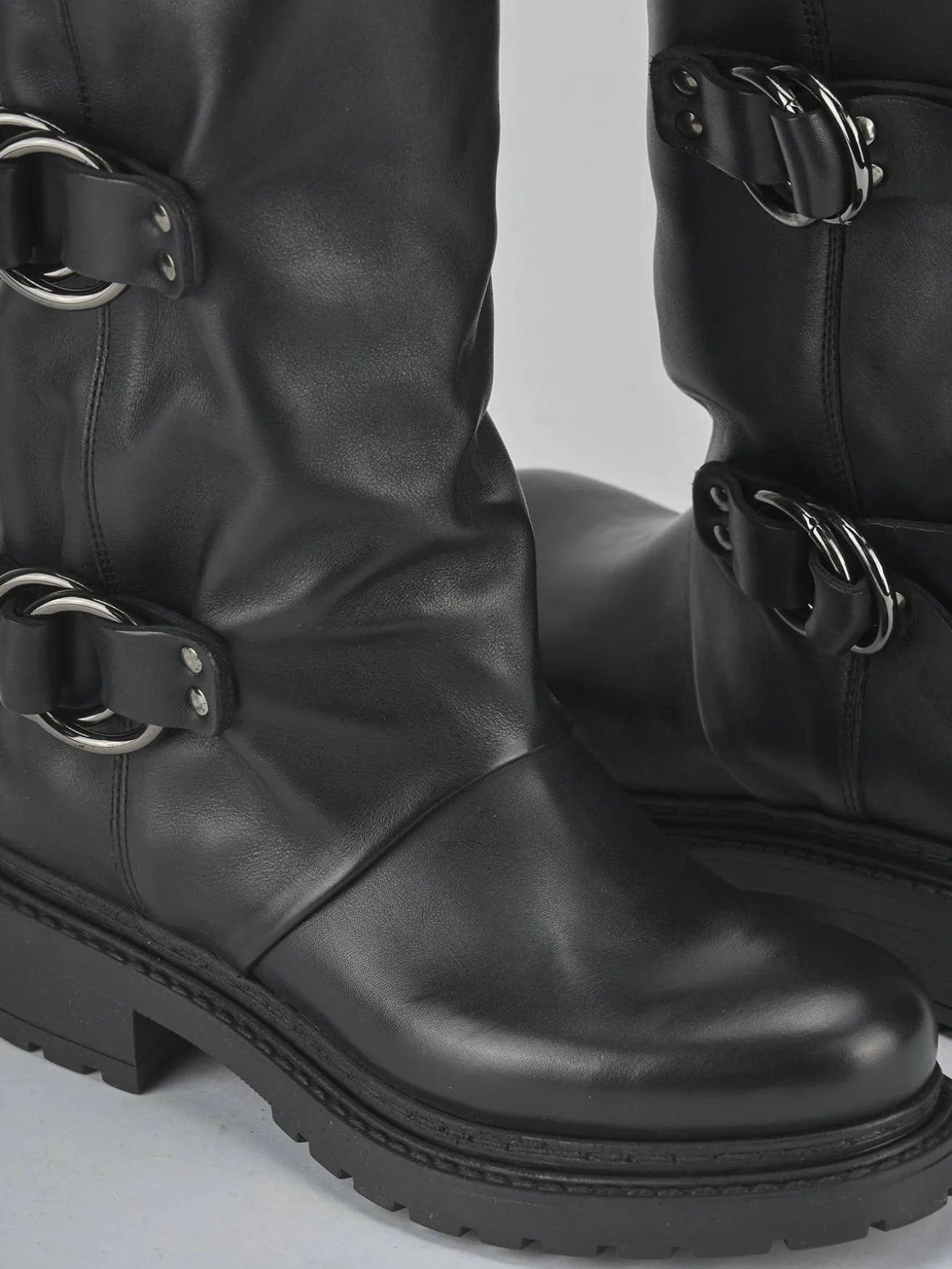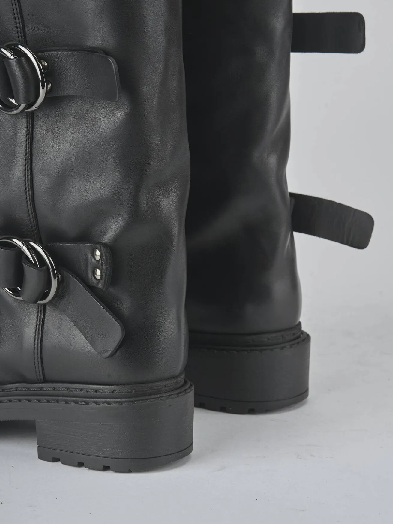 Realizzati in pelle di alta qualità, questi stivali sono caratterizzati da un design robusto e moderno.