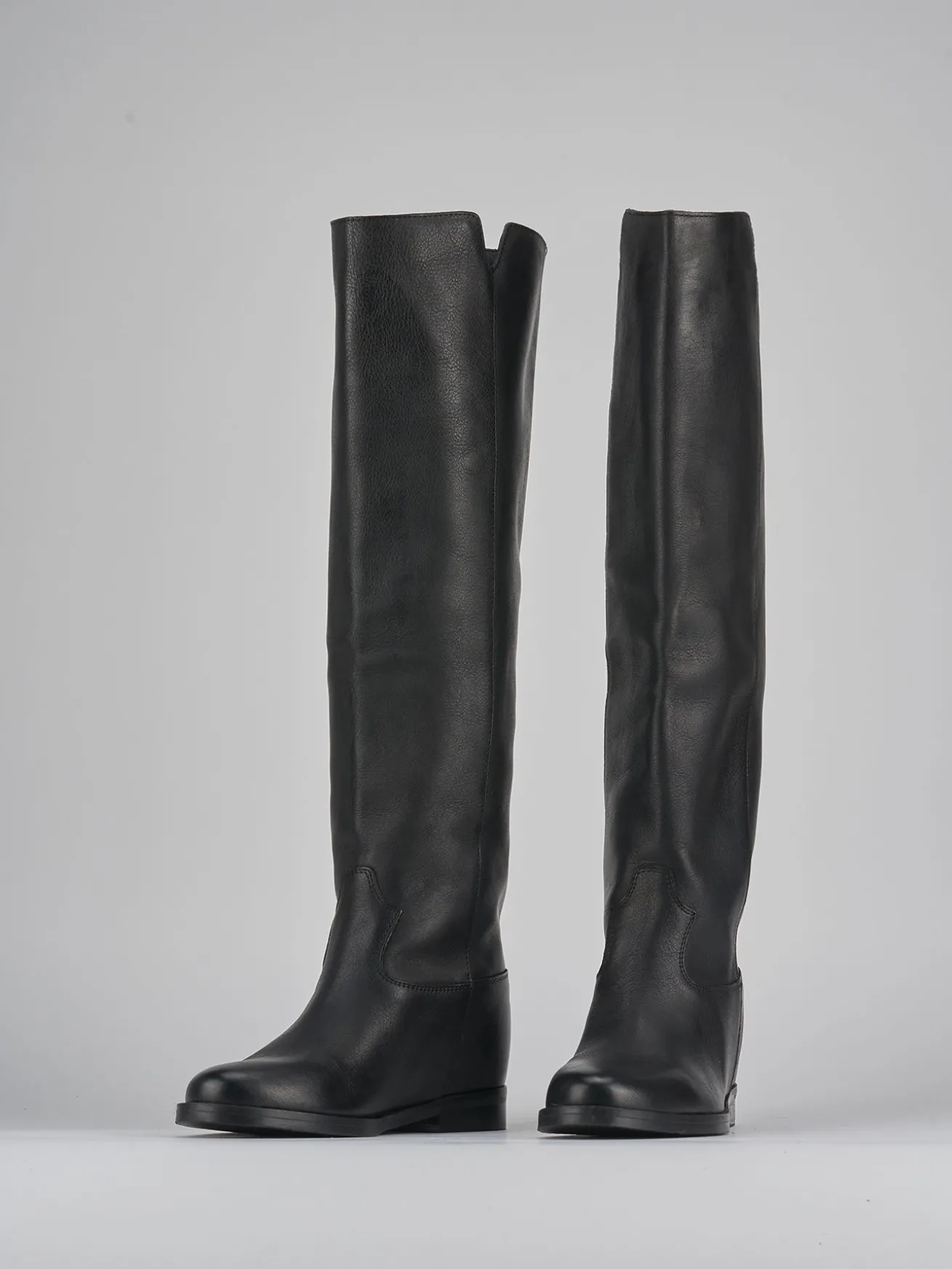 Il gambale dal design tubolare si estende appena sotto il ginocchio, arricchito da un moderno spacco laterale a V.