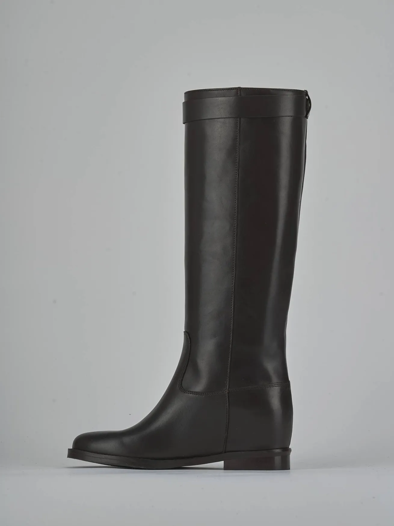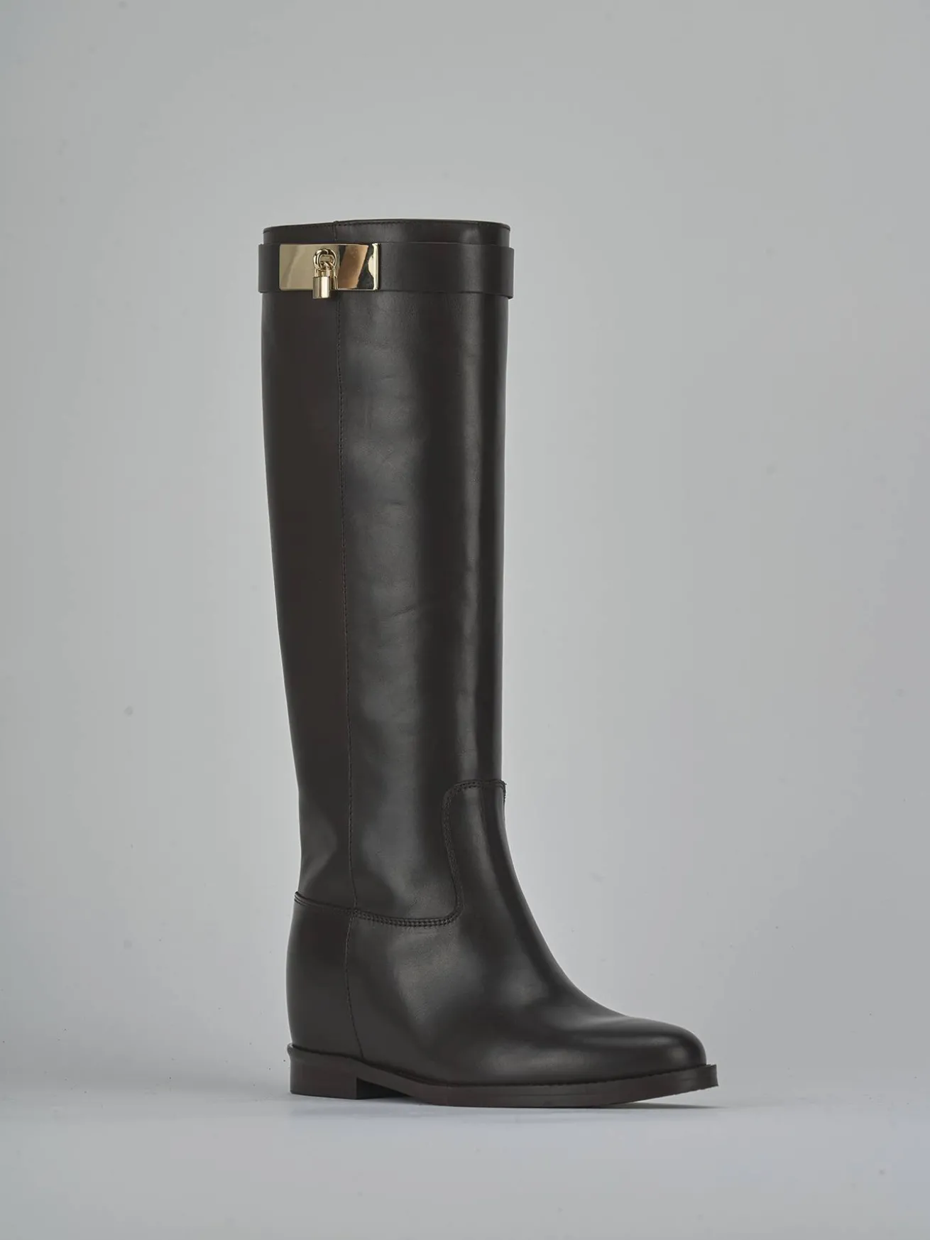 Il gambale si estende fino a poco sotto il ginocchio, con un cinturino decorativo che conferisce un look chic.