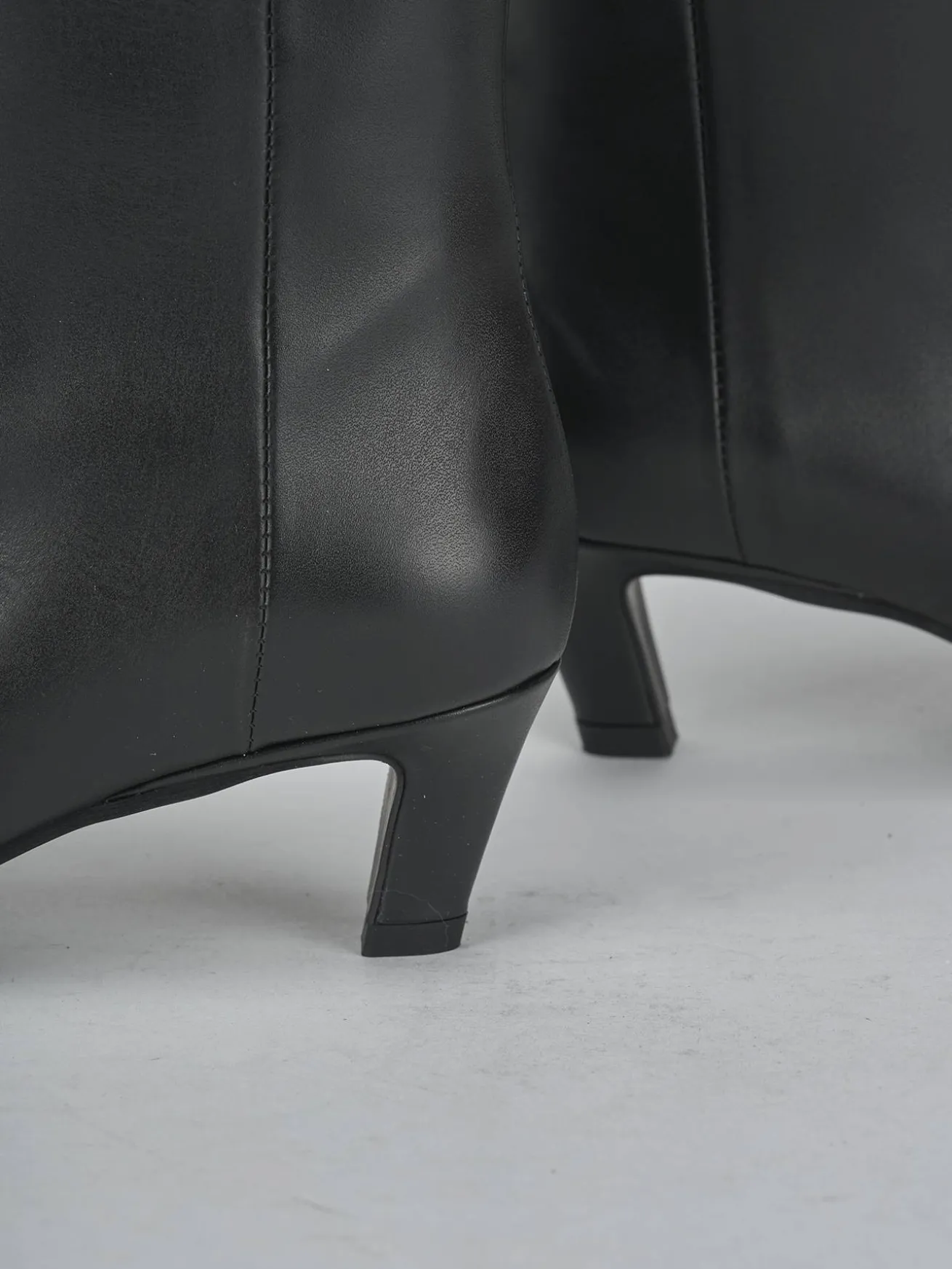 Il design presenta una punta sfilata e cuciture visibili a mano sul gambale tubolare, che arriva appena sotto il ginocchio.